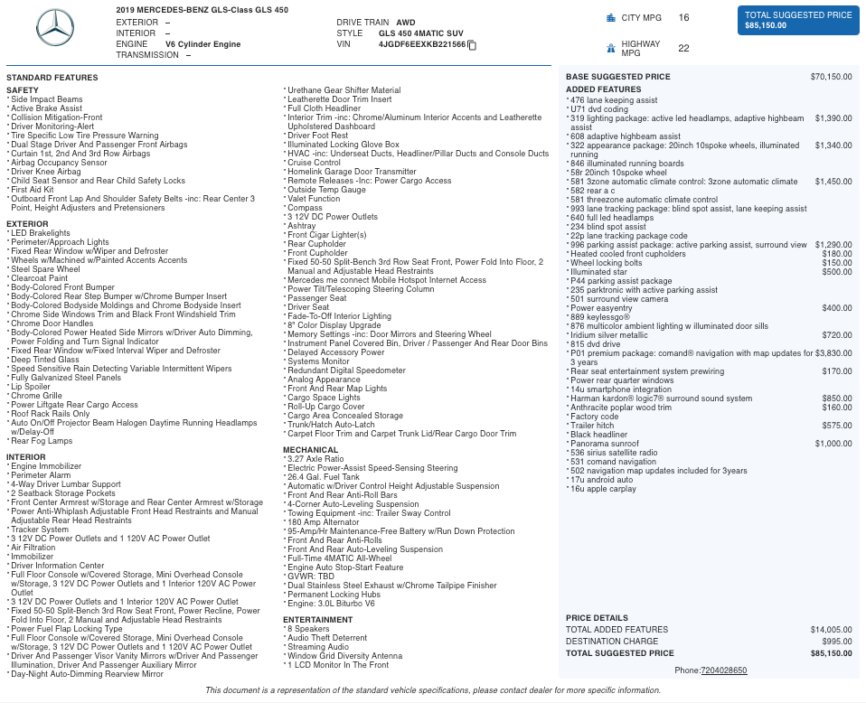 With its generous cargo capacity, refined road manners, and strong reputation for safety and luxury, the 2019 GLS 450 is an excellent option for families or anyone seeking a sophisticated full-size SUV with premium capability.