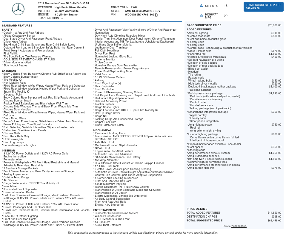 This 2019 Mercedes-Benz GLC AMG GLC 63 brings together handcrafted V8 performance, luxury craftsmanship, and everyday practicality. Finished in High-Tech Silver Metallic with a premium Nappa Leather cabin, it offers an unmistakable AMG presence and a refined driving experience. The 4MATIC+ AWD system, AMG-tuned suspension, and high-performance brakes deliver confident handling, while the powerful Bi-Turbo V8 provides instant acceleration and a deep, distinctive exhaust note.