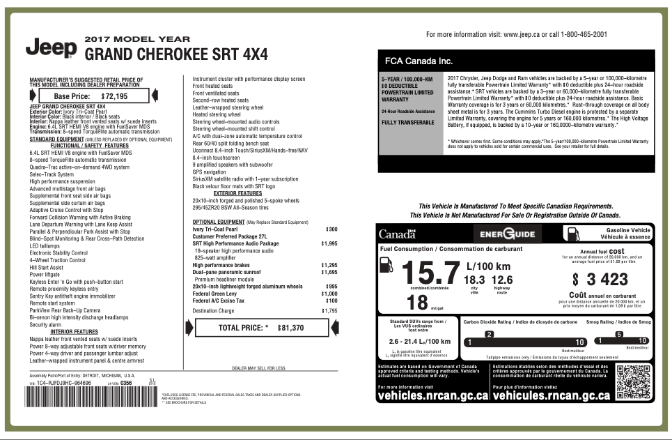This SRT offers a rare combination of raw power, luxury comfort, and true all season capability, making it one of the most complete performance SUVs of its era.