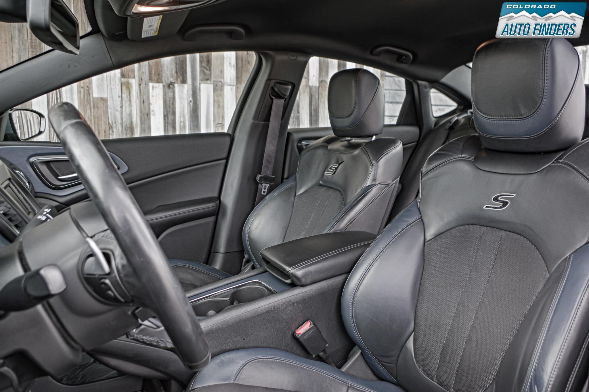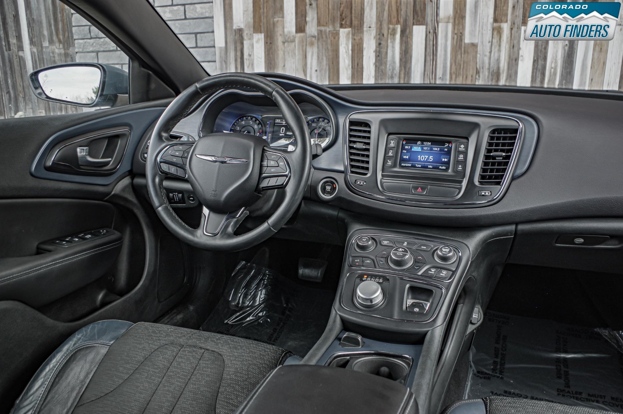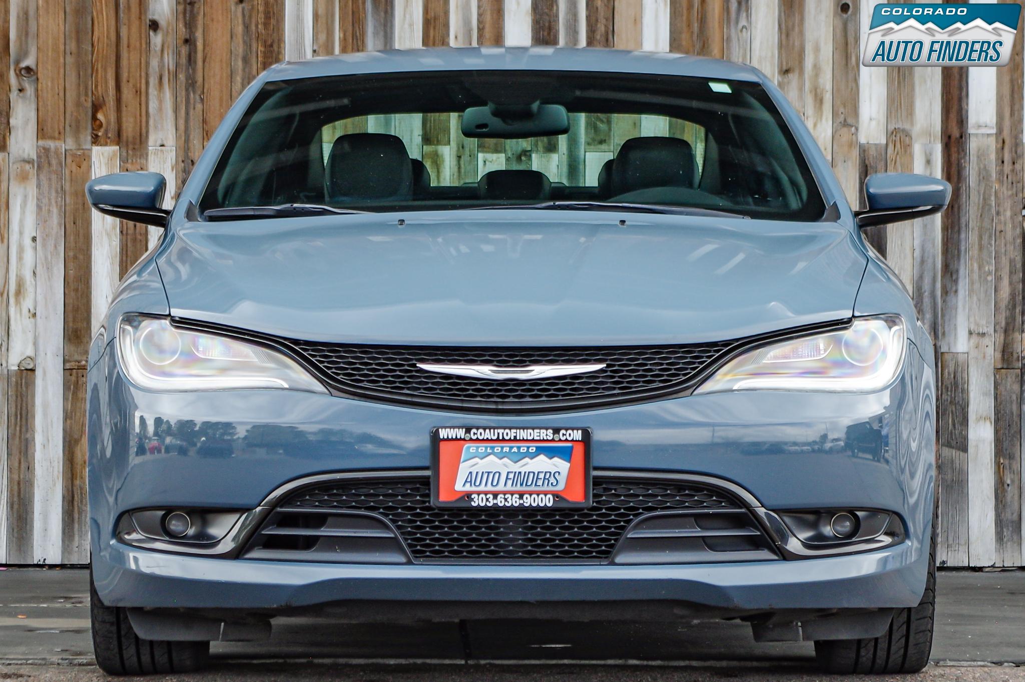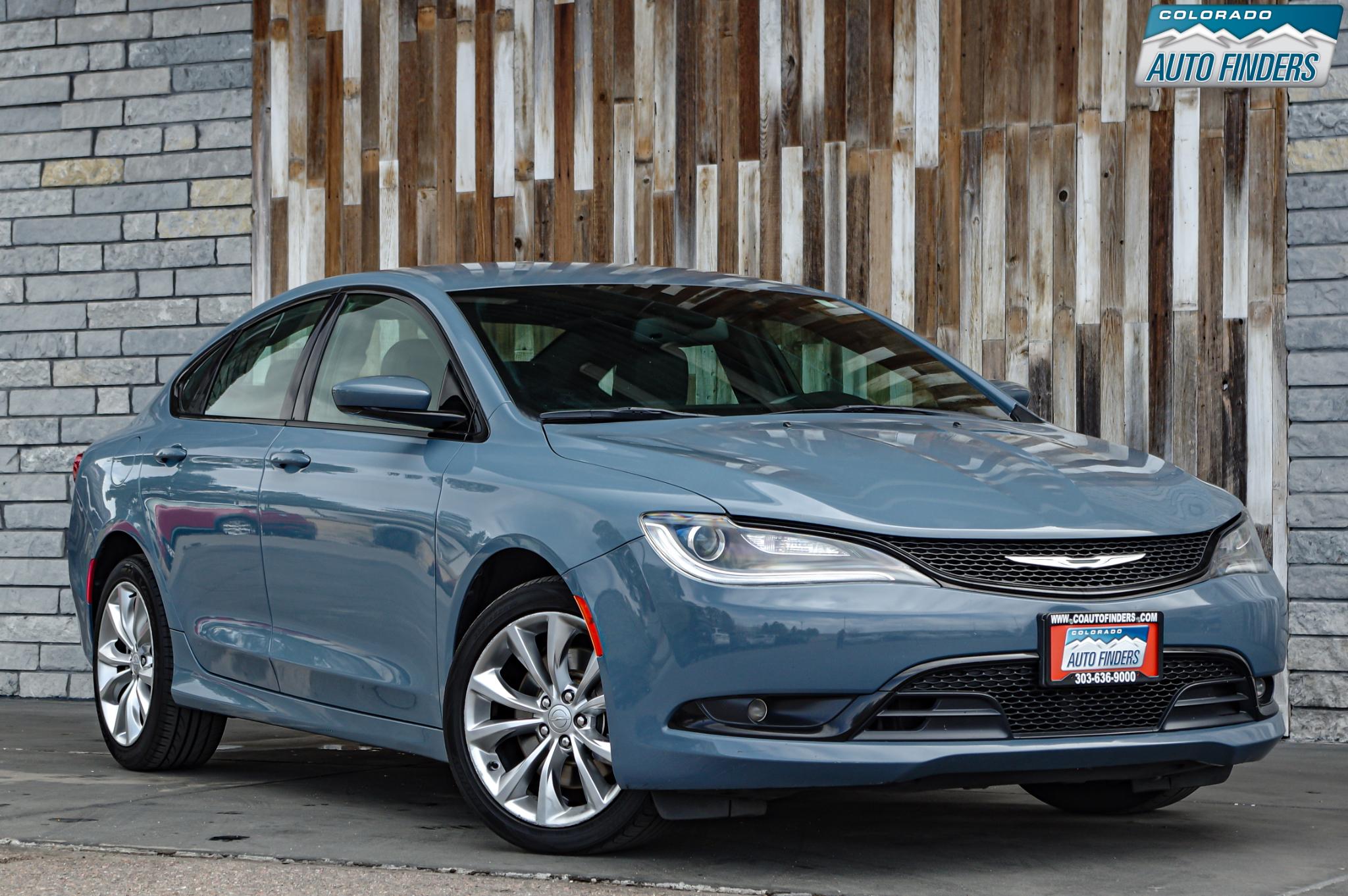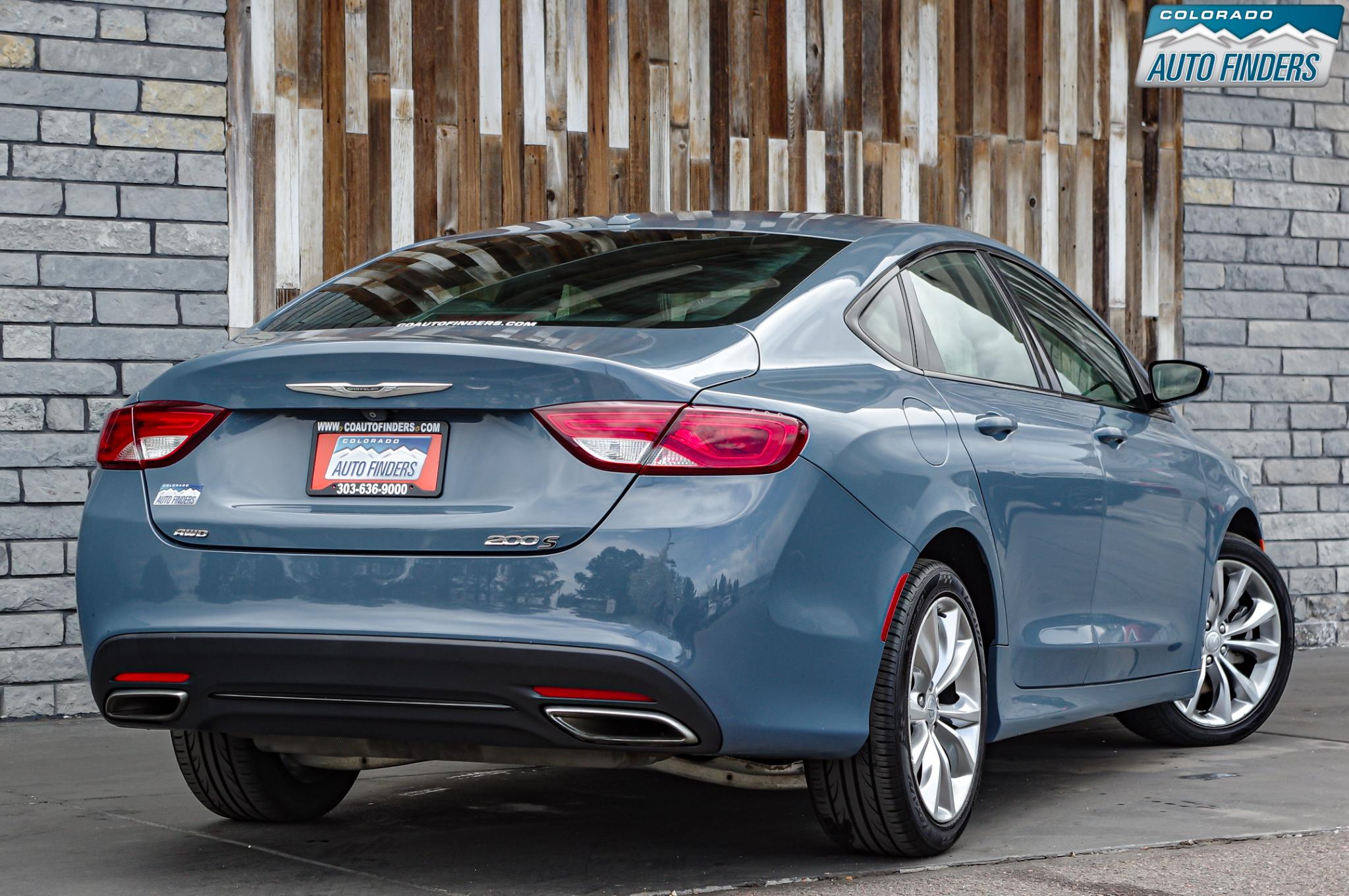 Sporty styling meets all-weather capability in this 2015 Chrysler 200 S AWD, finished in Ceramic Blue Clearcoat with a black interior, offering a sleek design and confident performance for Colorado driving.