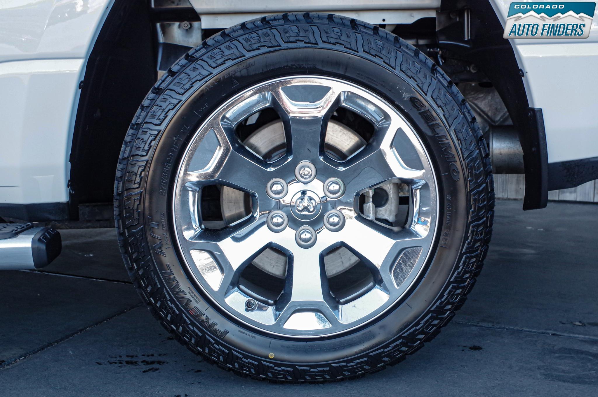 Finished in Billet Silver Metallic Clearcoat over a Black interior with premium cloth seating, this Sport package equipped Ram stands out with its monochromatic body colored bumpers, black exterior accents, and bold 20-inch aluminum chrome clad wheels that give it a clean, aggressive presence.