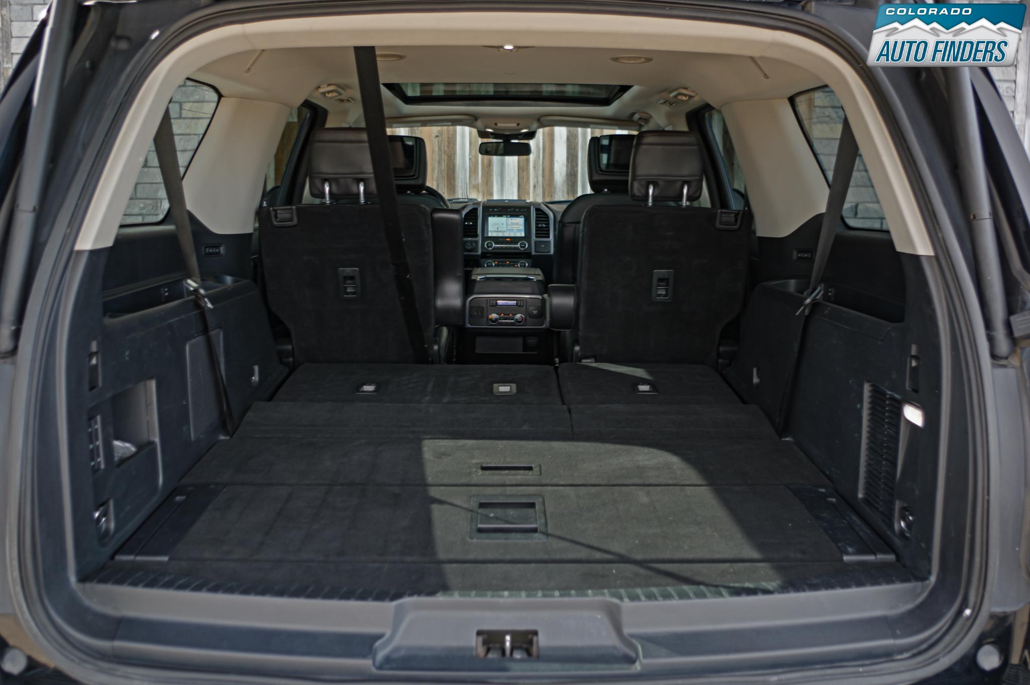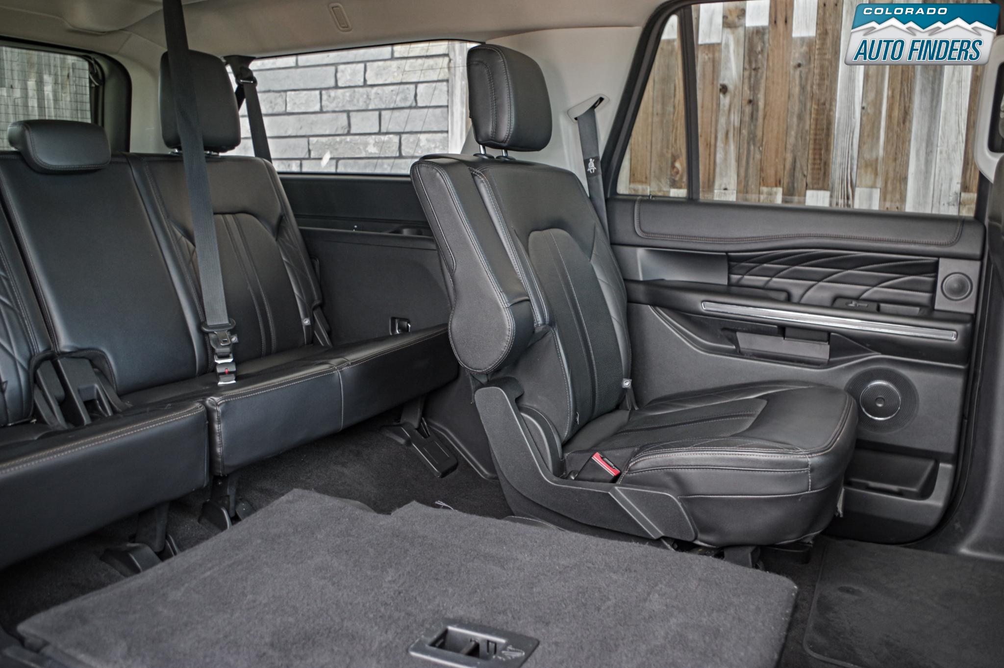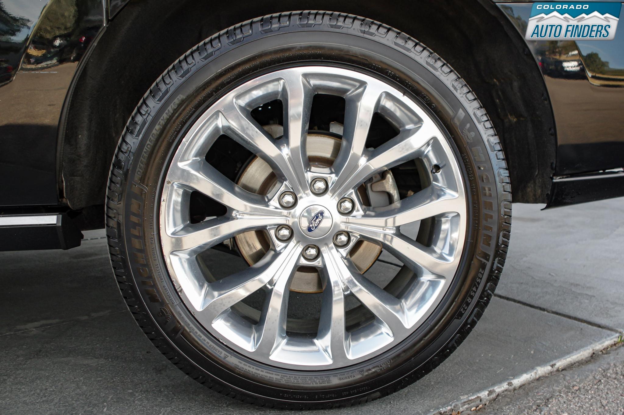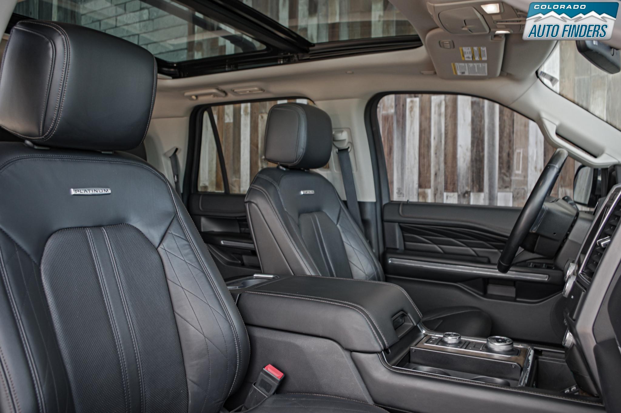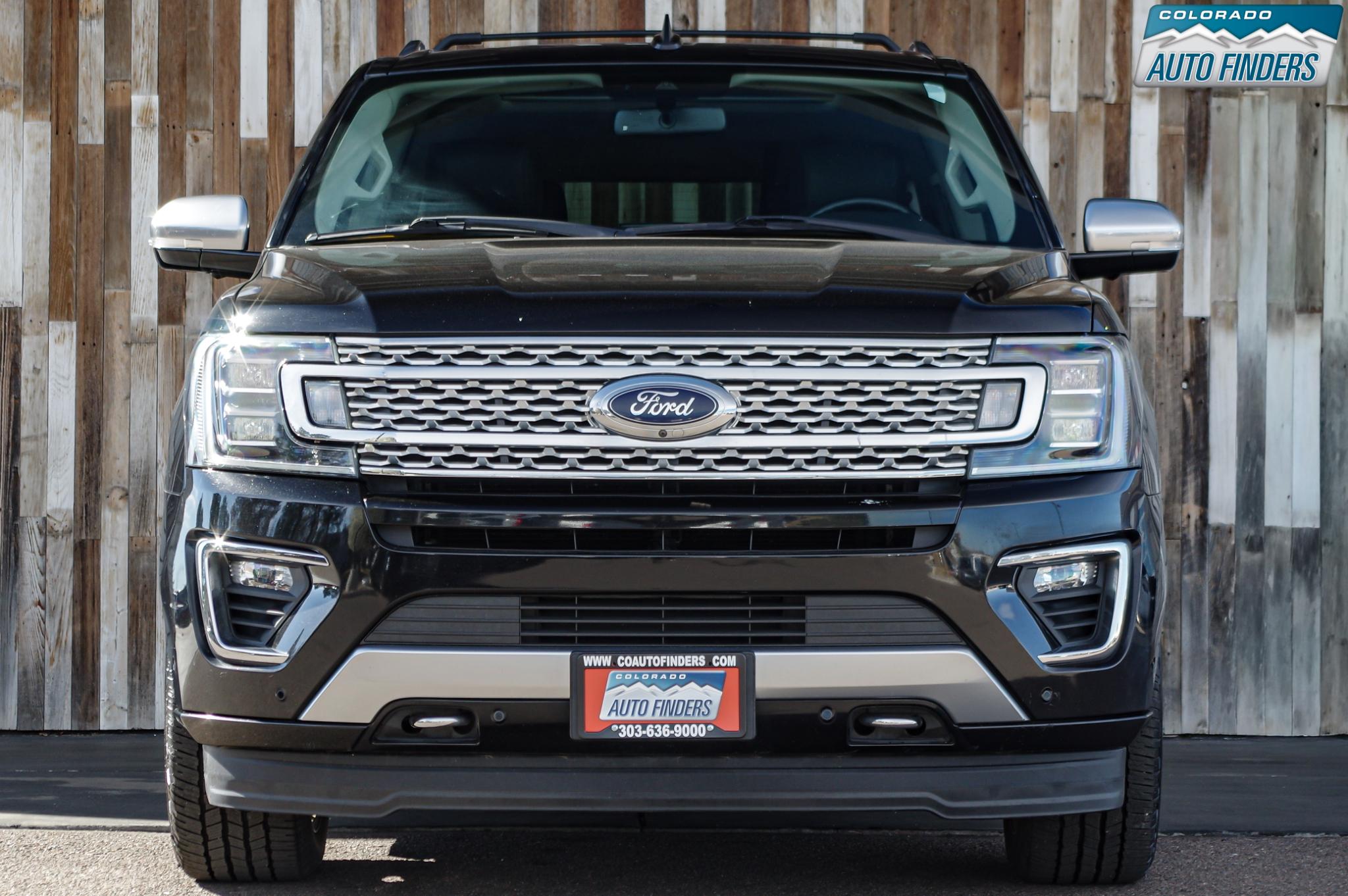 As a Platinum trim, this Expedition Max is loaded with high-end features including heated and ventilated front seats, heated second-row seats, power-folding third row, panoramic Vista roof, and premium leather throughout. Technology highlights include SYNC 3 with navigation, Apple CarPlay and Android Auto, a 360-degree camera system, adaptive cruise control, blind spot monitoring, lane keeping assist, and a premium Sony audio system. Rear seat entertainment keeps passengers comfortable on long trips, while the extended Max body provides exceptional cargo space behind the third row.