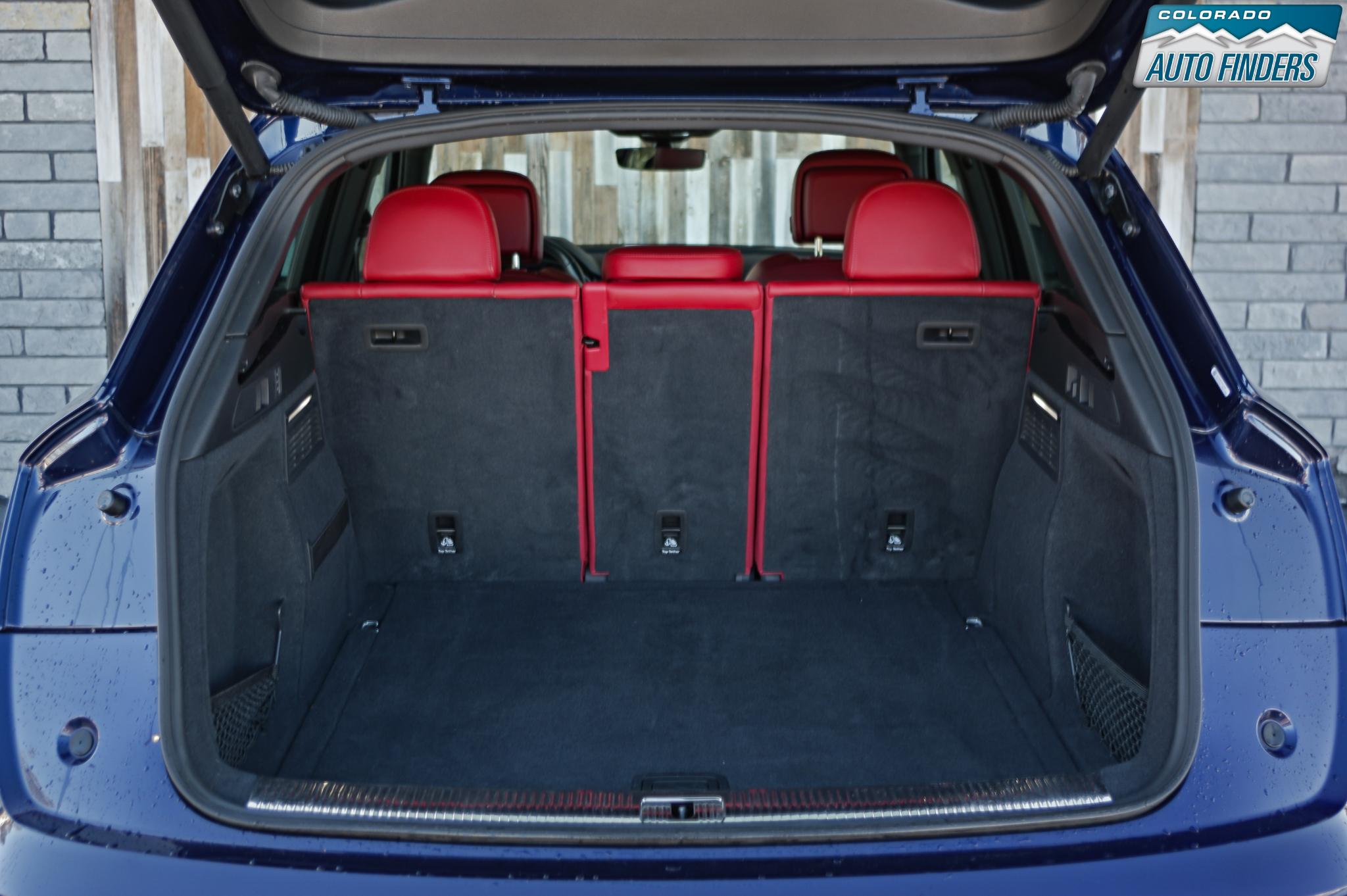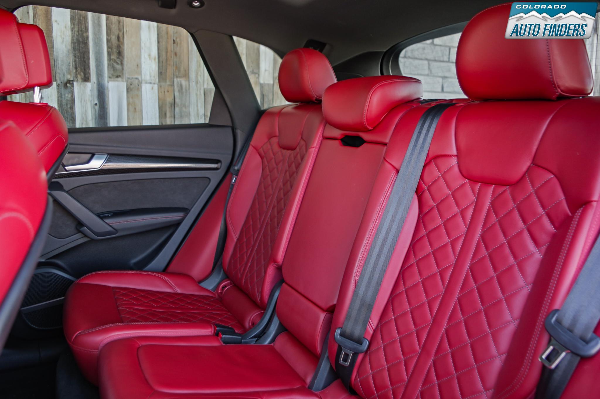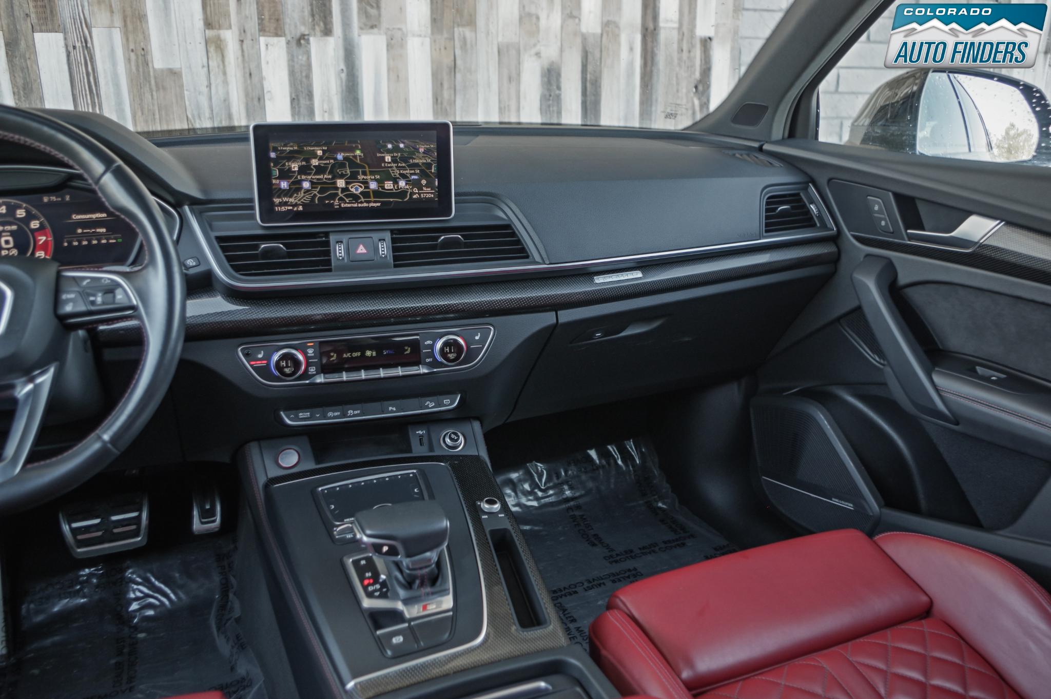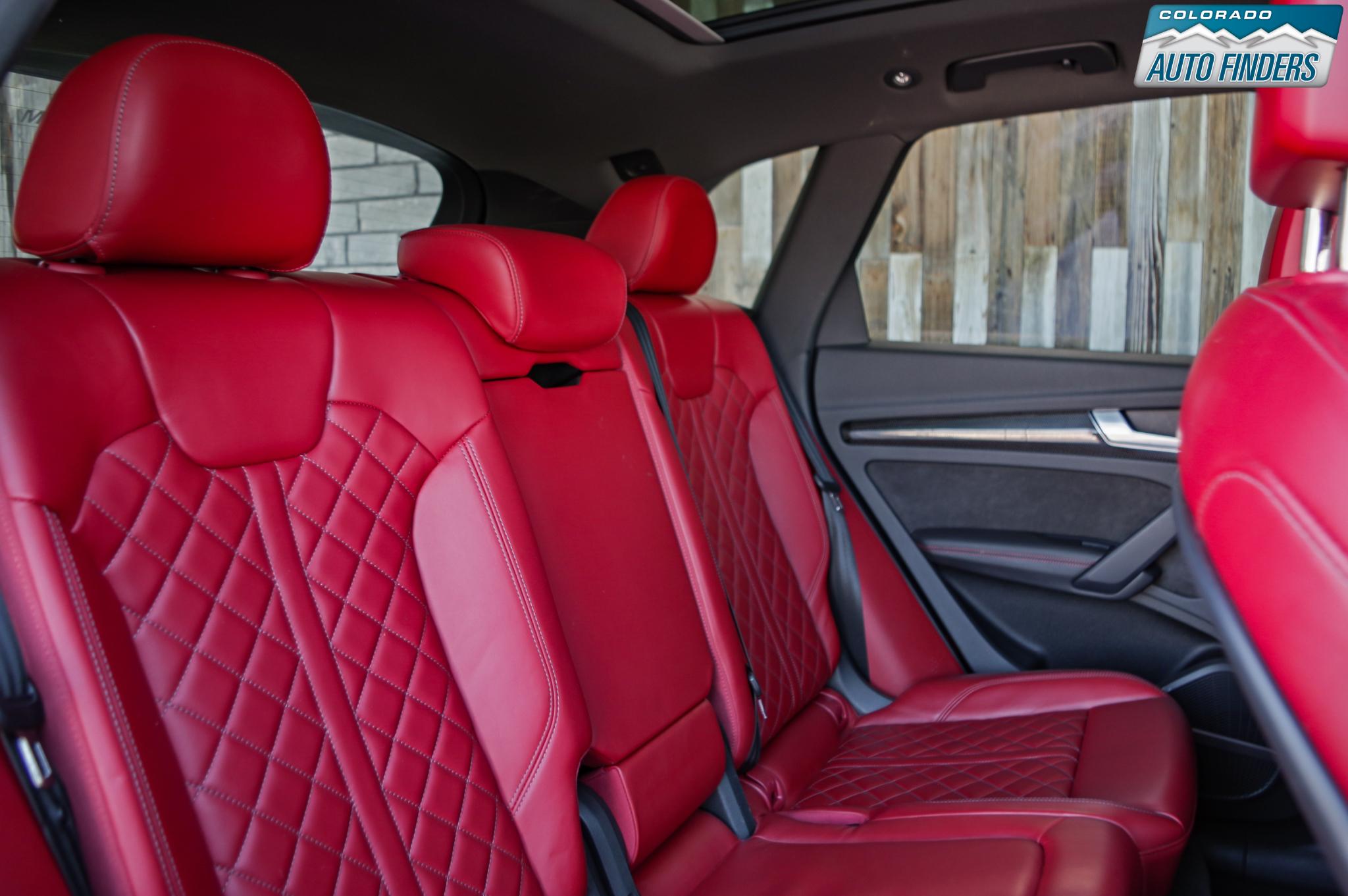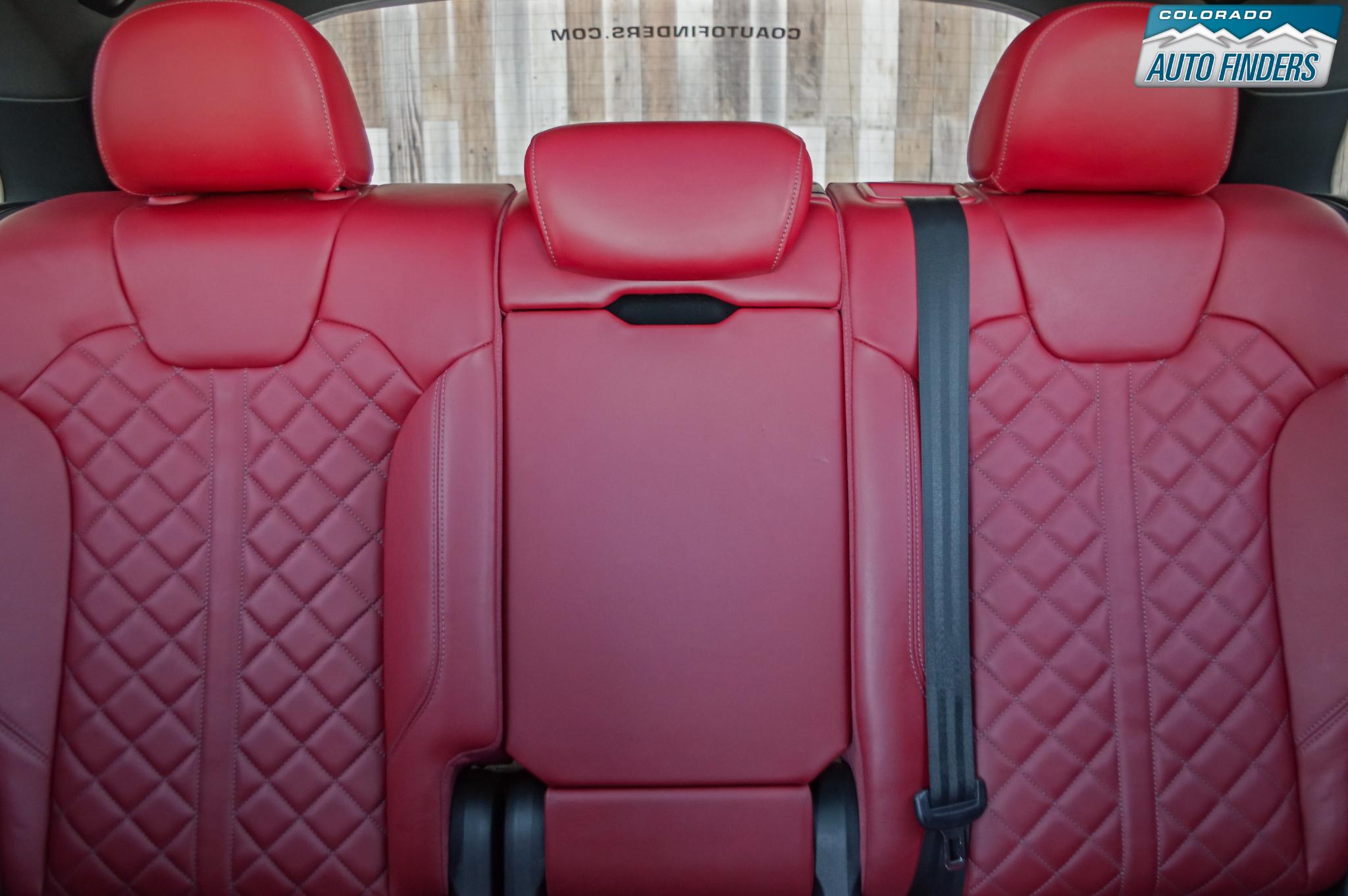 The cabin reflects Audi’s premium craftsmanship with high-quality materials and advanced technology throughout. Premium Plus equipment includes Audi virtual cockpit, MMI Navigation Plus with MMI touch, Audi smartphone interface with Apple CarPlay and Android Auto, panoramic sunroof, heated power front seats with driver memory, tri-zone automatic climate control, and a power liftgate. The Bang & Olufsen 3D premium sound system delivers exceptional audio quality, while the Magma Red interior creates a bold, performance-inspired atmosphere.
