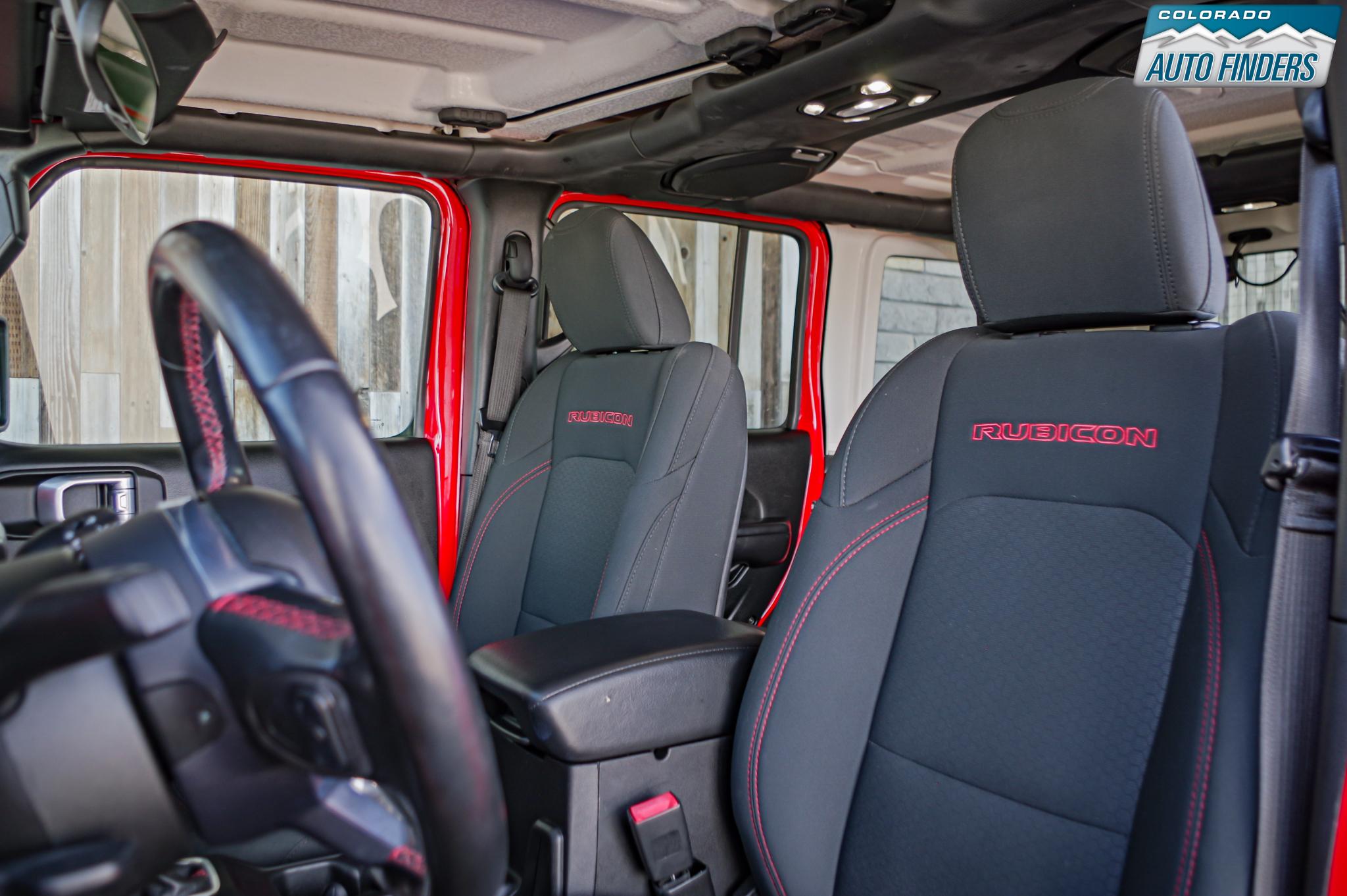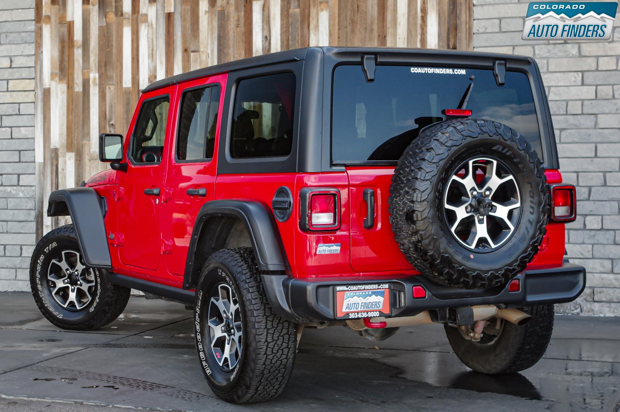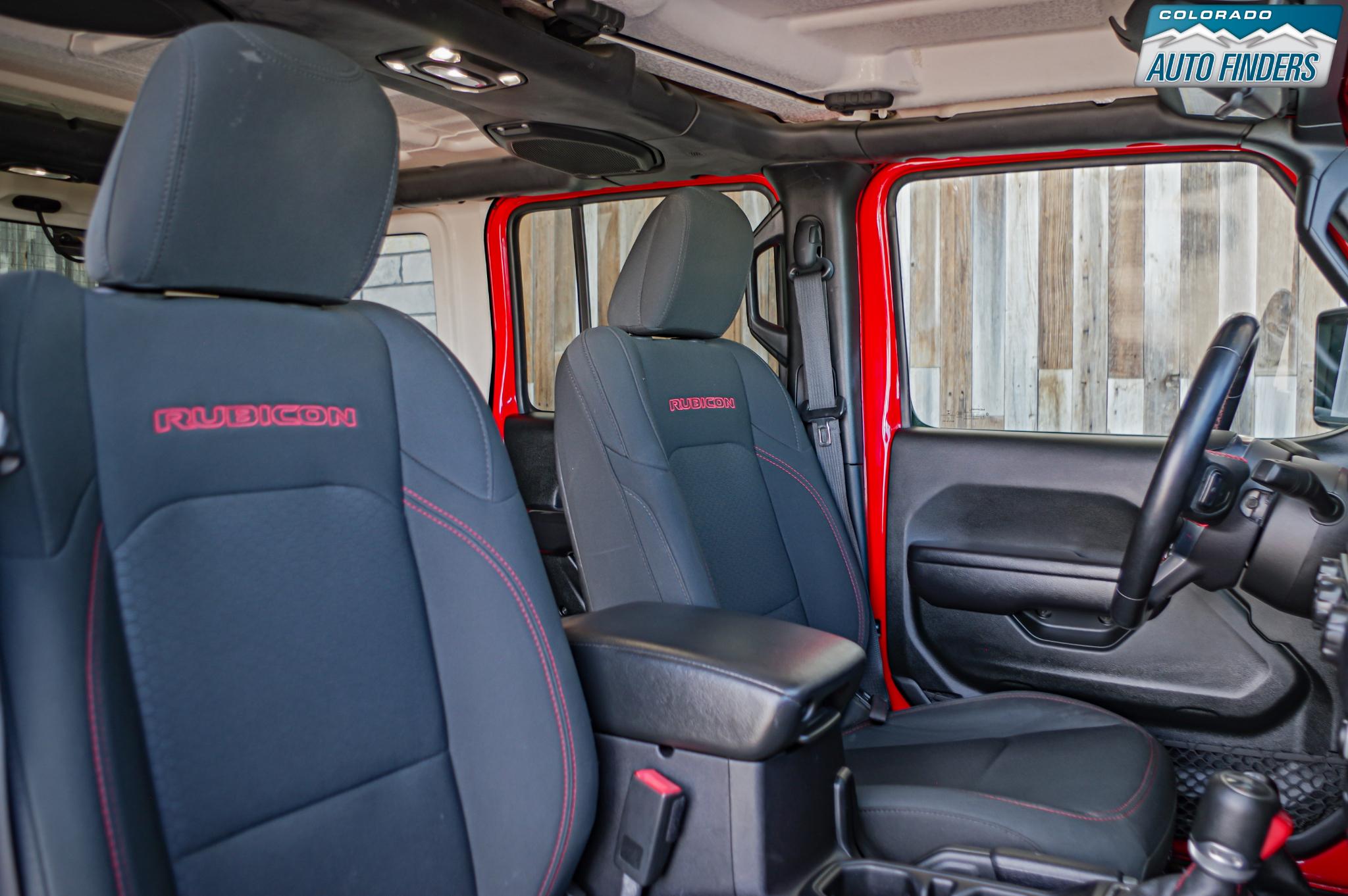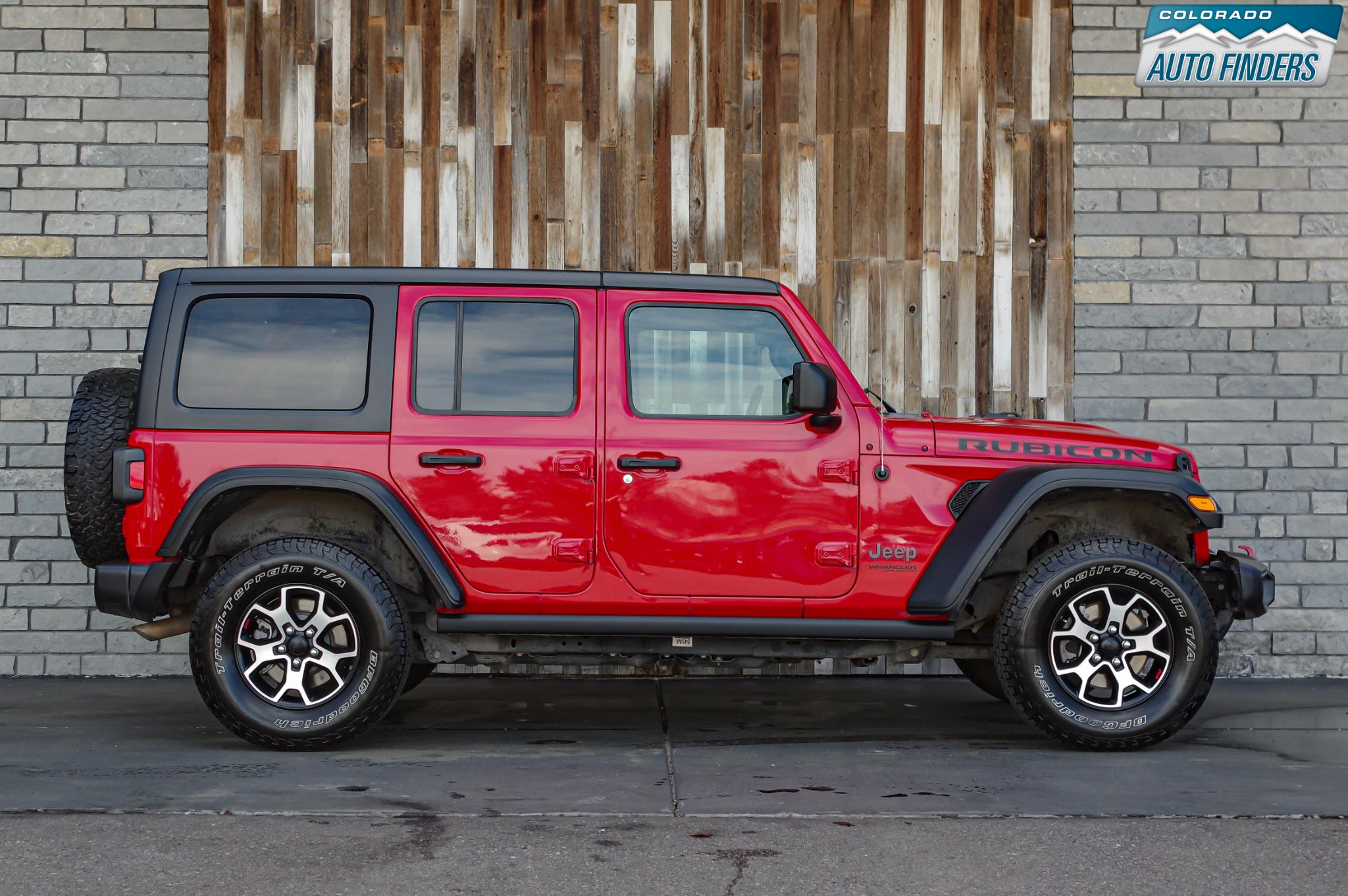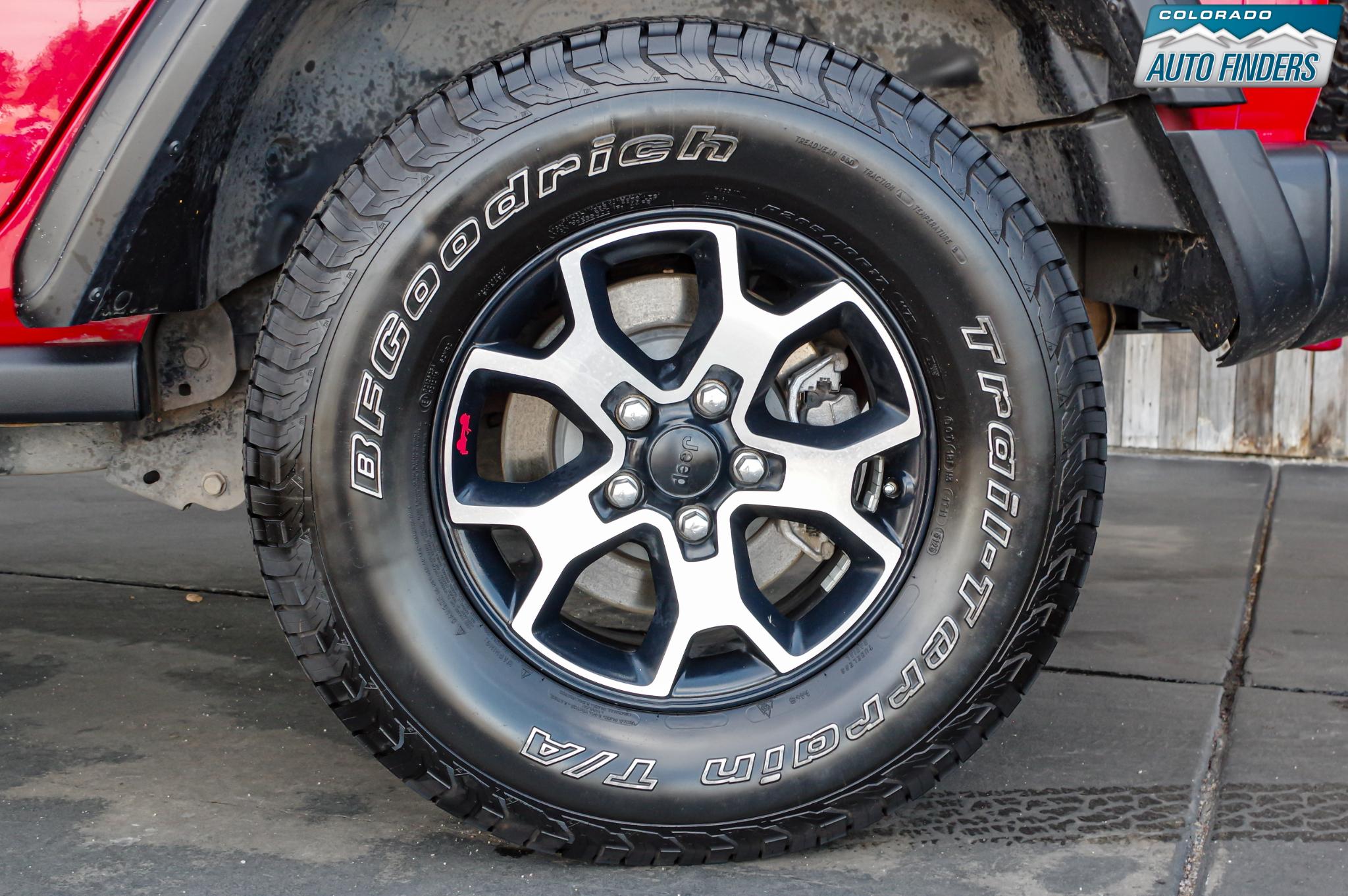 This Rubicon is equipped with several desirable options including the 8-speed automatic transmission, Freedom Panel hardtop, Black 3-piece hardtop, rear window defroster and washer, and off-road ready BFGoodrich tires mounted on distinctive Rubicon wheels.