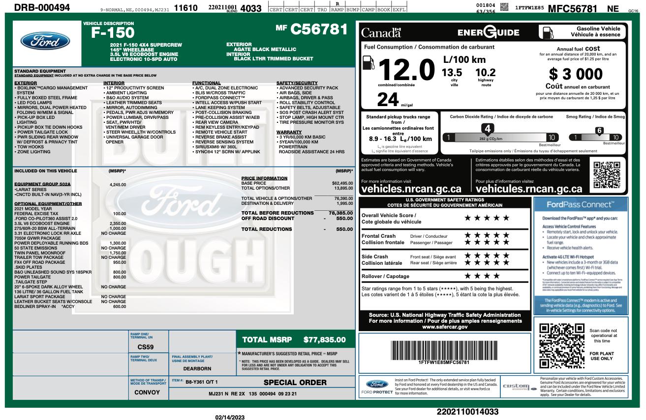 Loaded Lariat luxury meets EcoBoost performance and proven 4x4 capability in this 2021 Ford F-150 Lariat SuperCrew finished in Agate Black Metallic over a Black leather-trimmed interior. Built to handle demanding jobs while delivering premium comfort and advanced technology, this F-150 stands out as one of the most versatile and sought-after trucks on the road today.