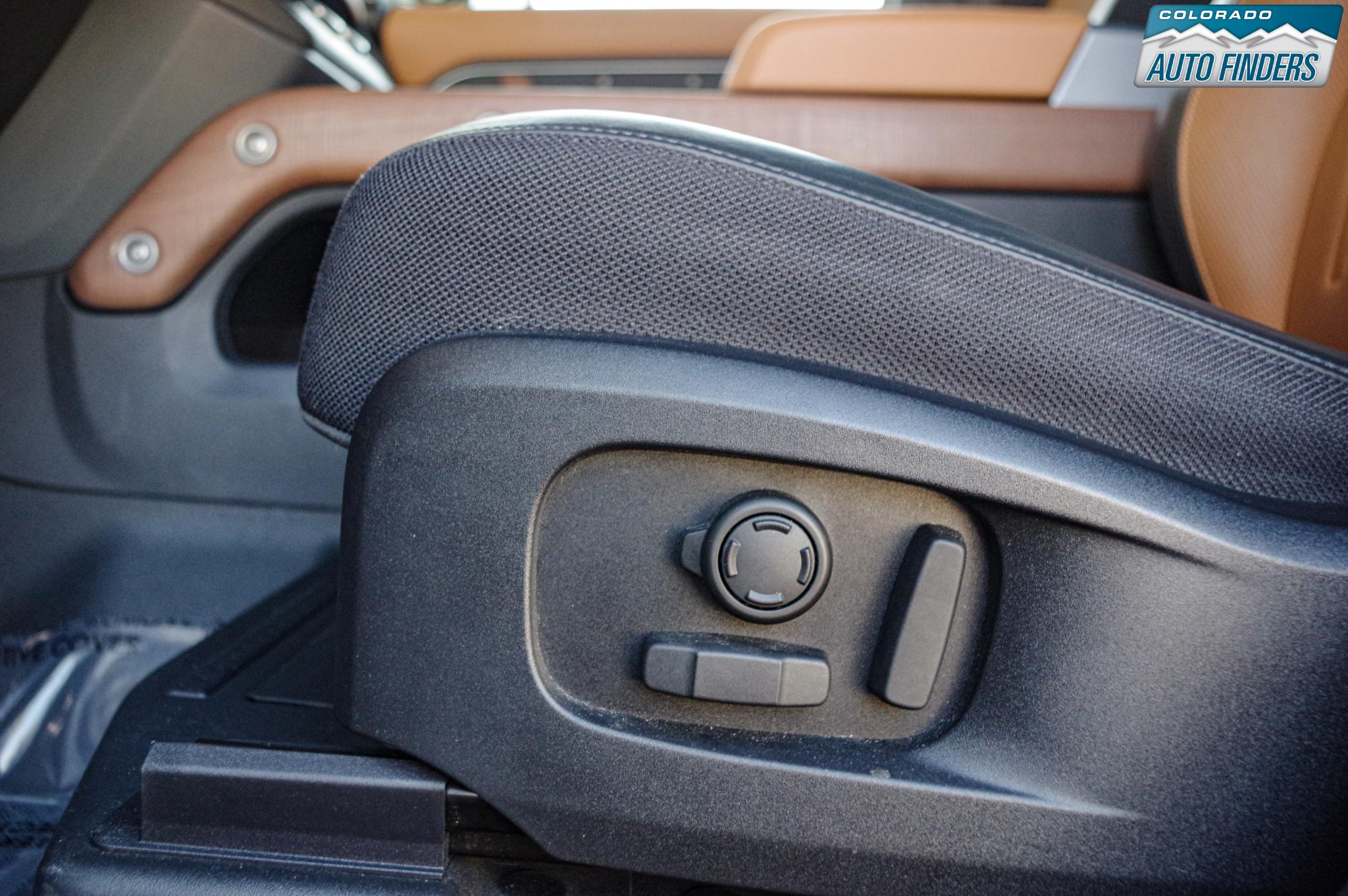 The X trim brings elevated styling and premium features, highlighted by 20-inch Style 5095 wheels, signature LED lighting, and a full-size rear-mounted spare tire that reinforces its rugged design. The bold stance and modern Defender shape give it a commanding road presence while staying true to its legendary roots.