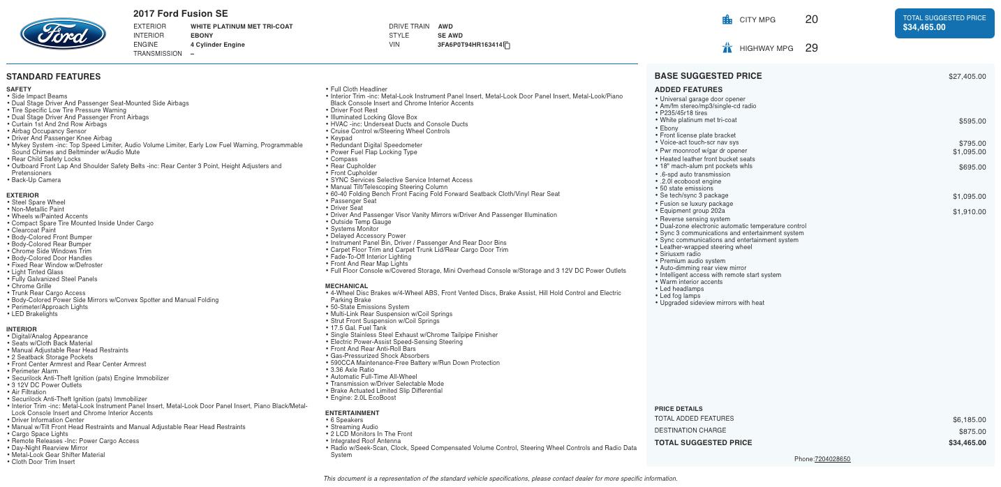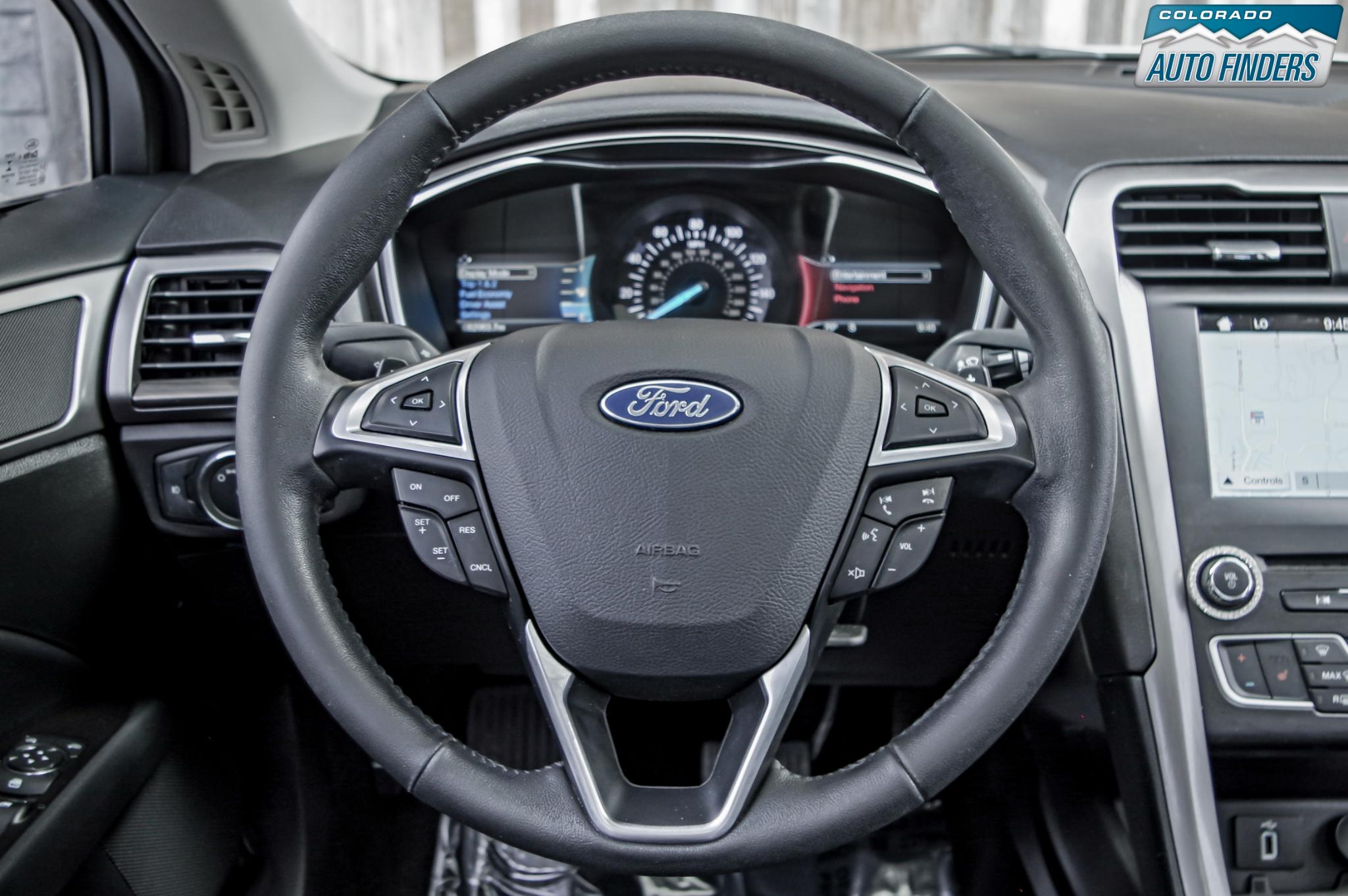 Powered by a 2.0L EcoBoost turbocharged engine paired with a smooth automatic transmission, this Fusion delivers a balanced mix of efficiency and responsive performance. The intelligent all-wheel drive system adds extra confidence in changing road conditions, making it a great fit for year-round Colorado driving.