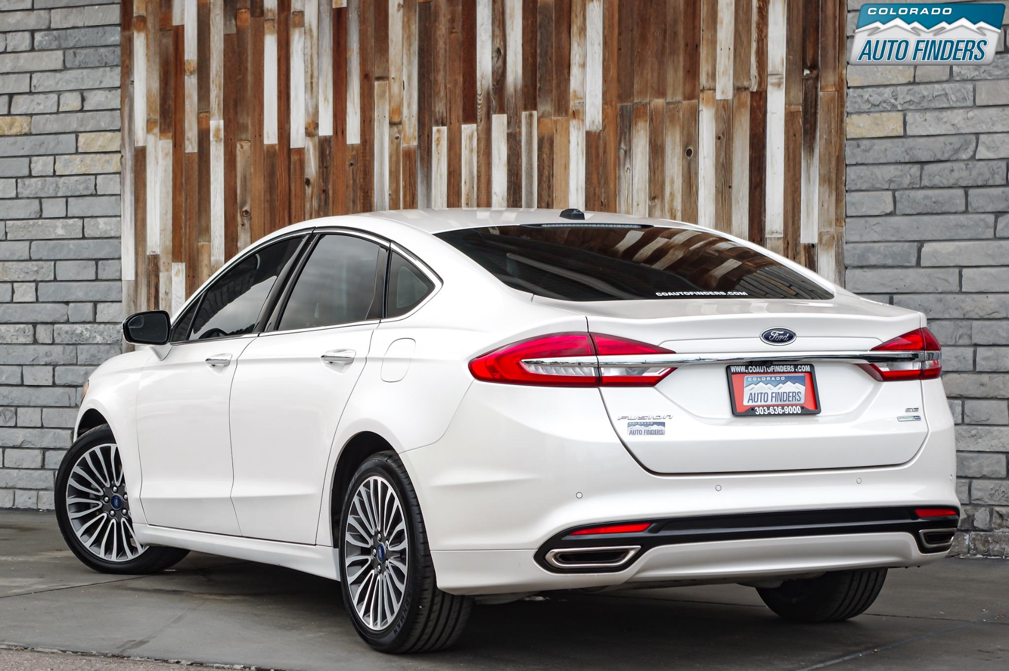 Confident all-weather capability meets everyday comfort in this 2017 Ford Fusion SE AWD, finished in White Platinum Metallic Tri-Coat with an ebony interior, offering a clean, upscale look with practical versatility.