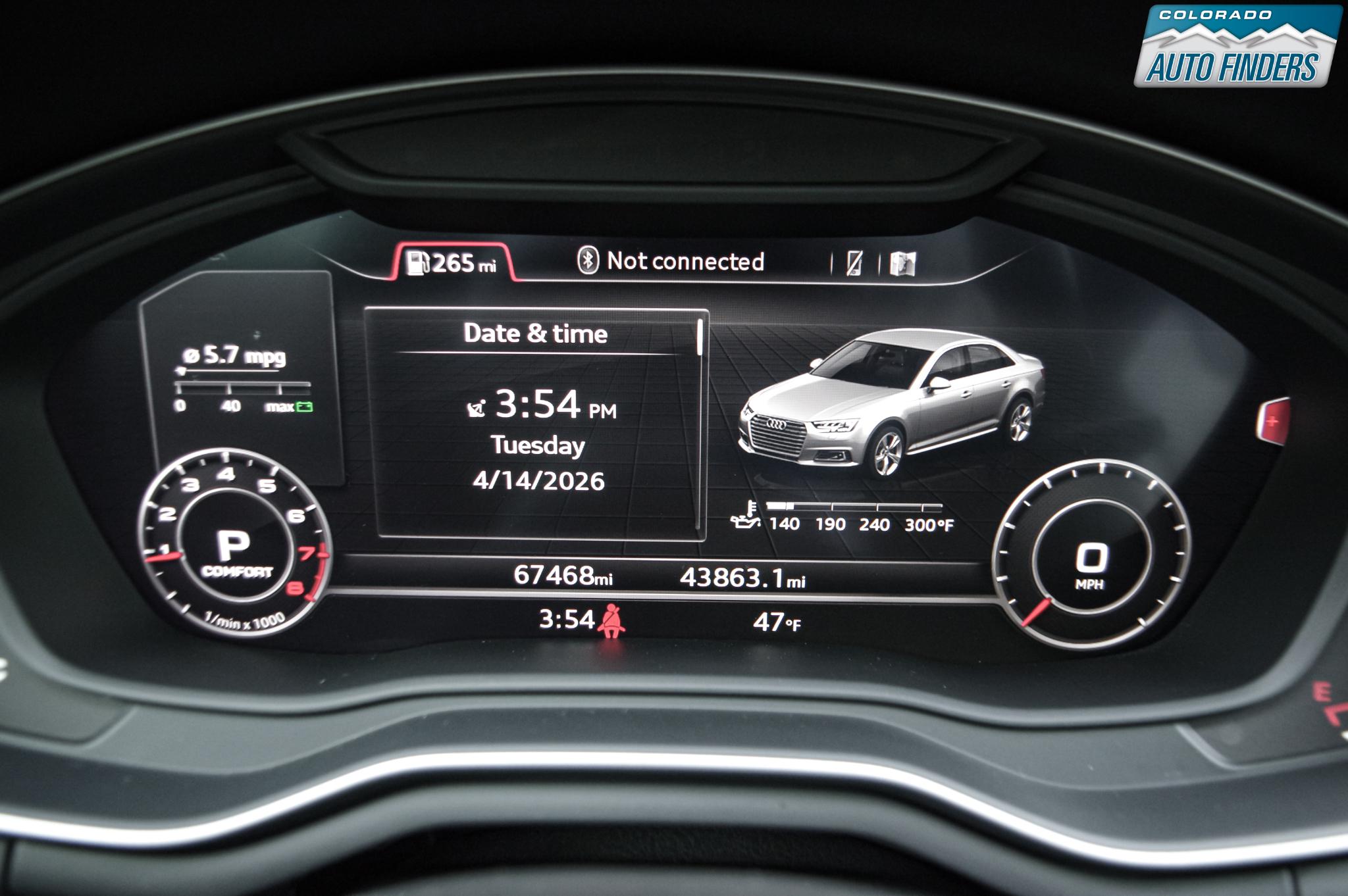 Powered by a 2.0L turbocharged 4-cylinder engine paired with a 7-speed S tronic dual-clutch transmission, this A4 offers quick, smooth shifts and responsive acceleration. Audi’s legendary quattro all-wheel drive system provides exceptional grip and stability, making it a confident performer in all weather conditions.