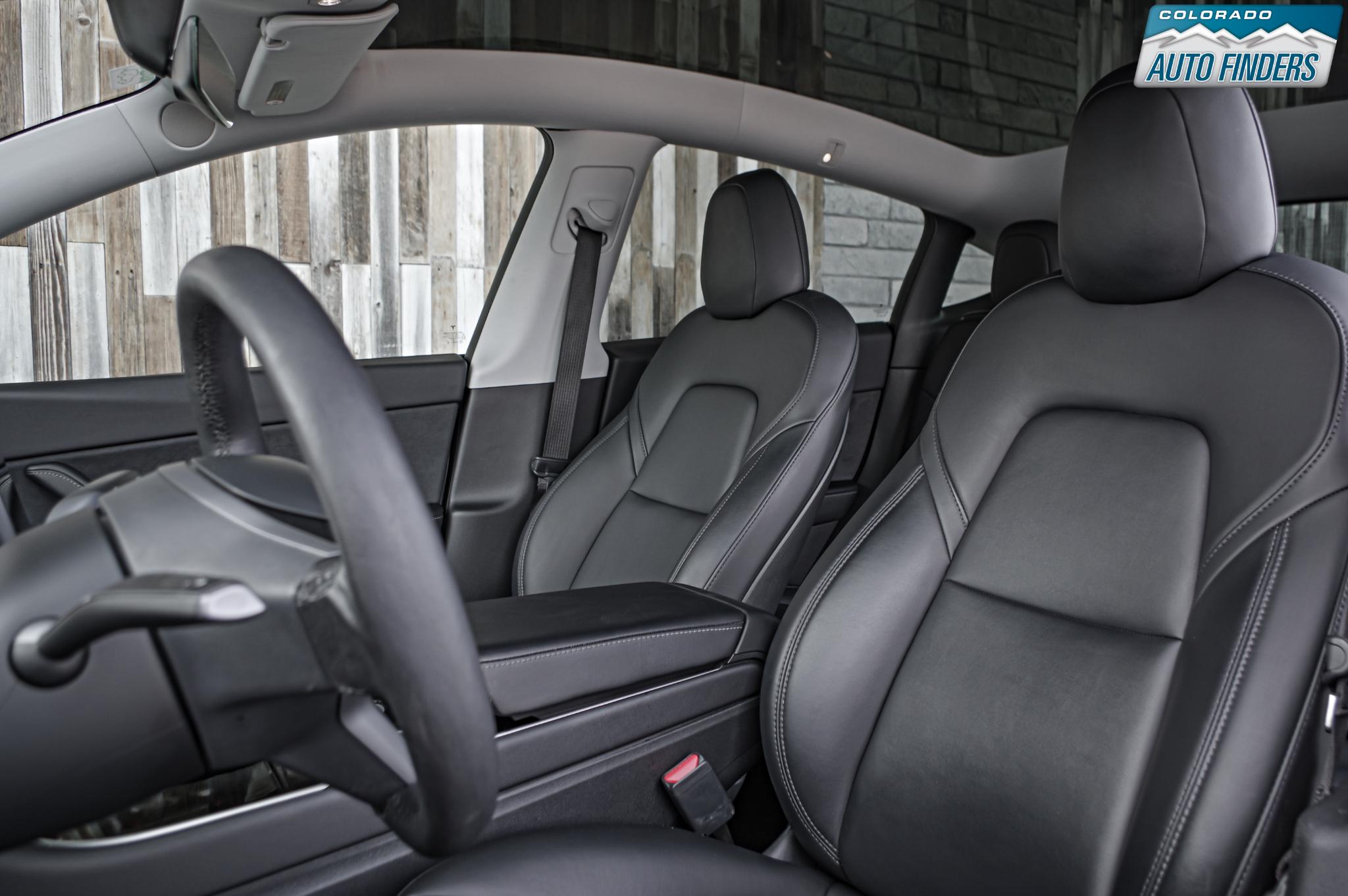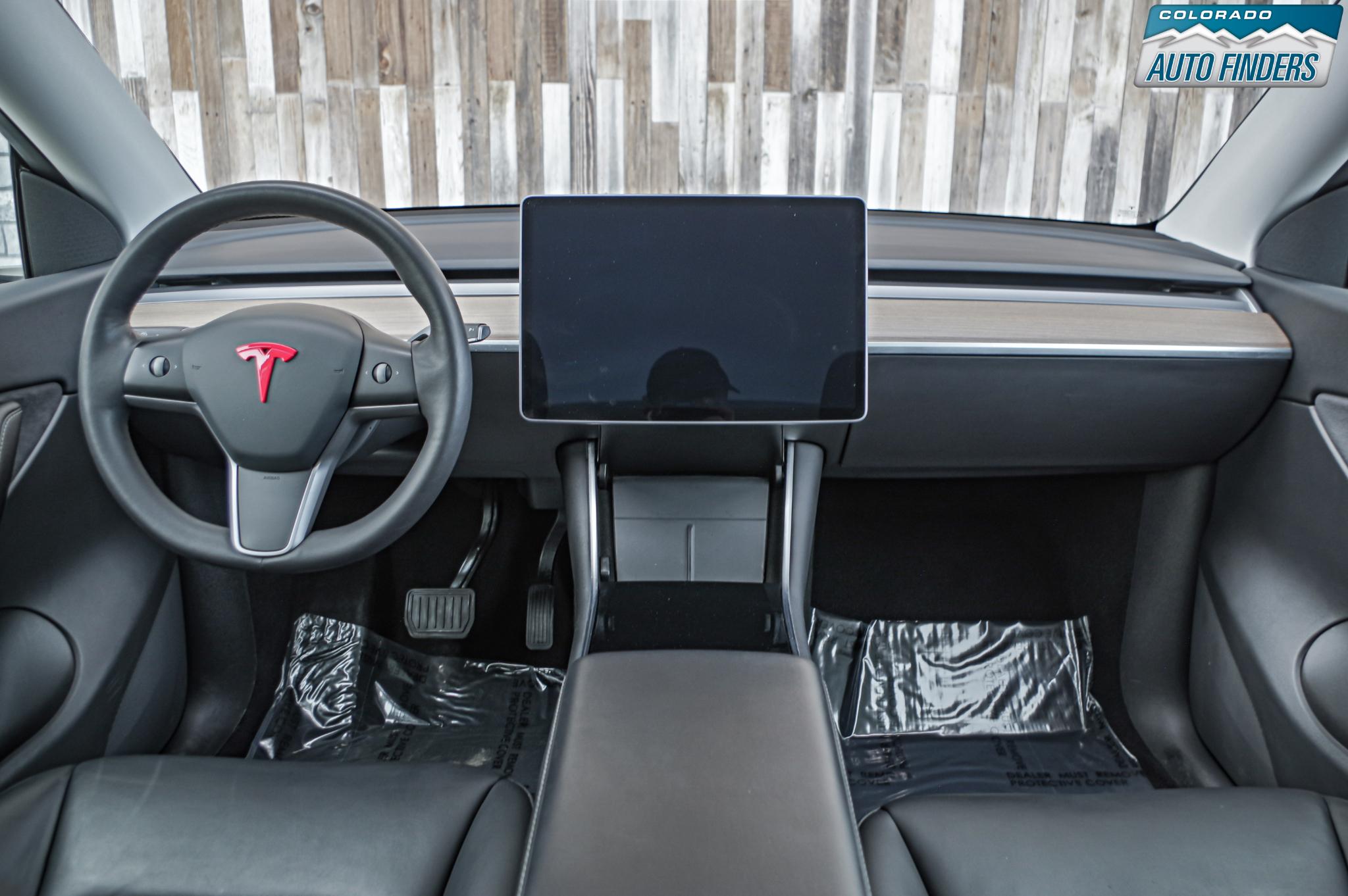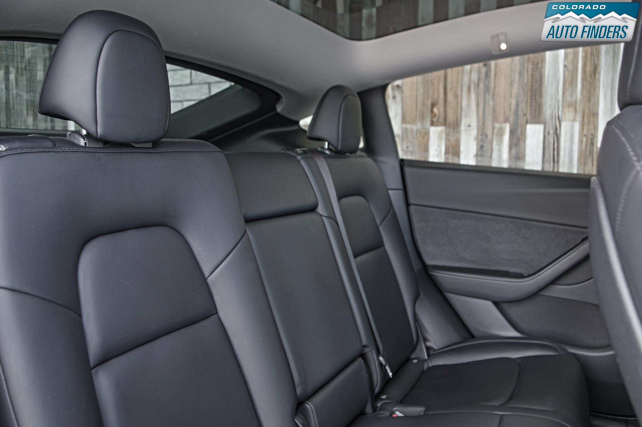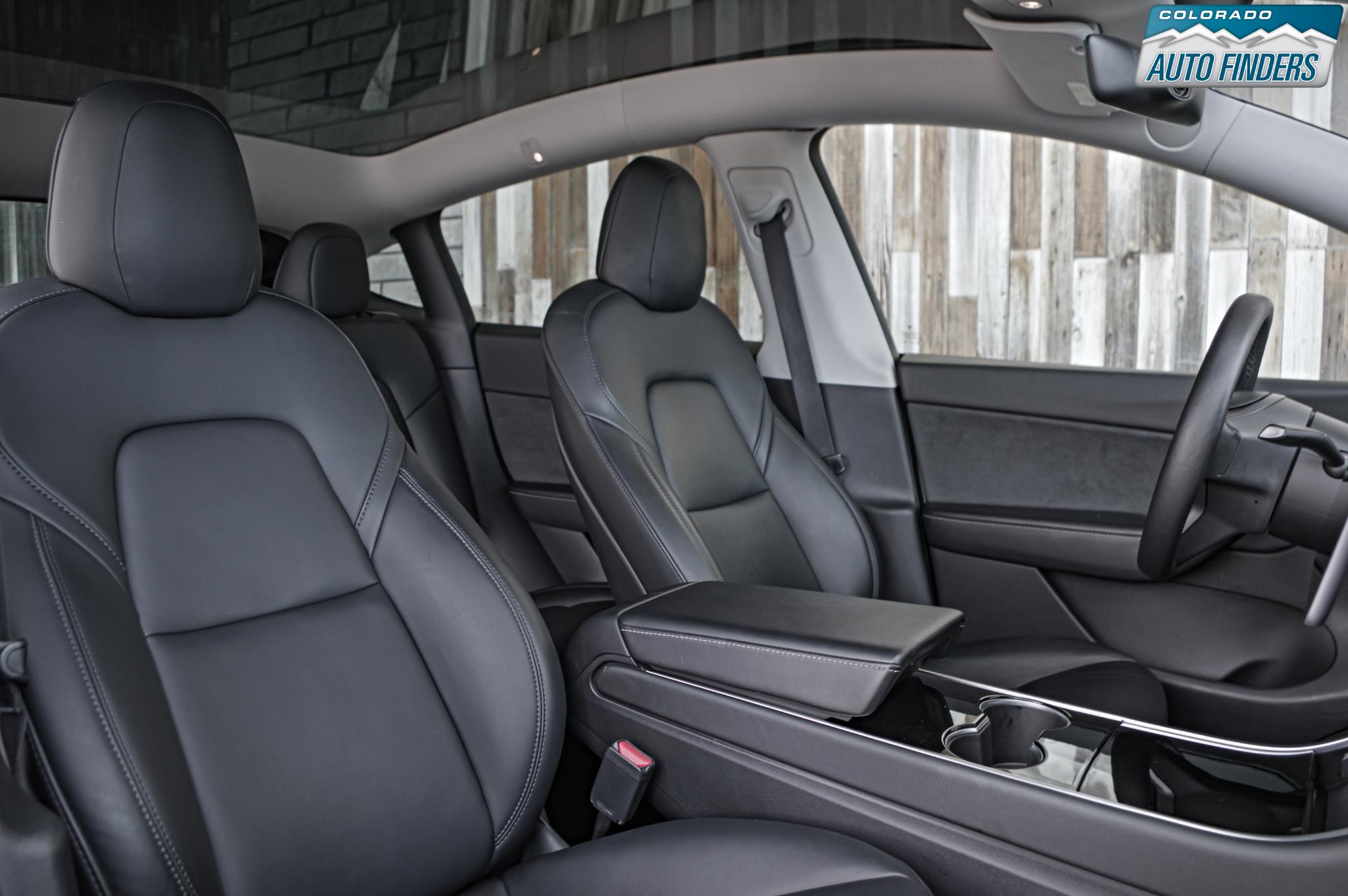 Inside, the minimalist cabin is centered around Tesla’s signature touchscreen interface, controlling everything from navigation to climate and media. Premium seating, a panoramic glass roof, heated front and rear seats, and a power-adjustable driver’s seat create a clean, modern, and comfortable environment for both driver and passengers.