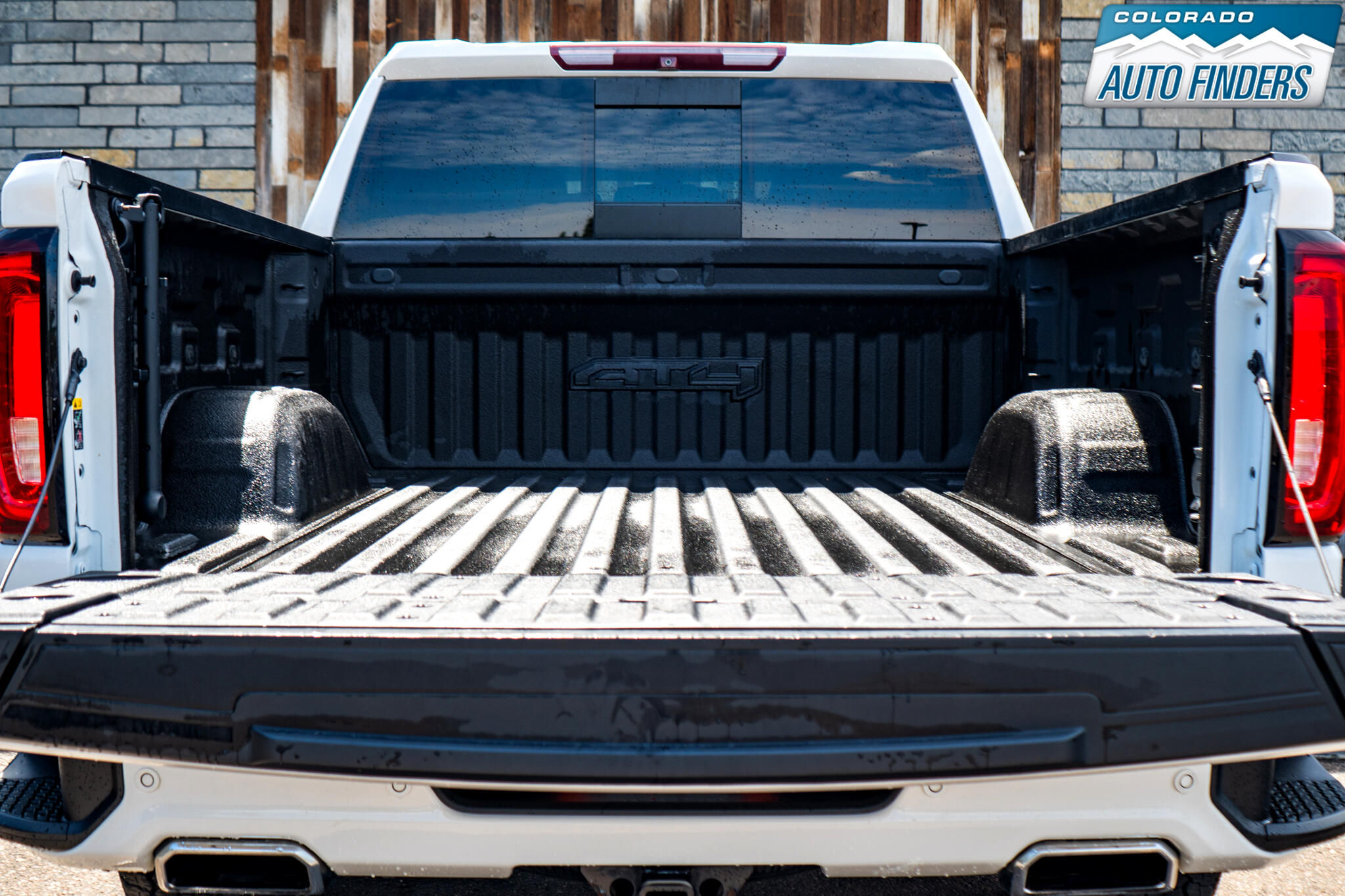 At the rear, the Sierra 1500 introduces one of its most notable innovations: the MultiPro tailgate. This tailgate can be configured into six different positions, serving as a traditional drop-down gate, a load stop, a work surface, or a step for easier bed access. The taillights echo the front design with C-shaped LED signatures. Higher trims feature chrome bumper accents, while off-road models like the AT4 have darker finishes and skid plates.