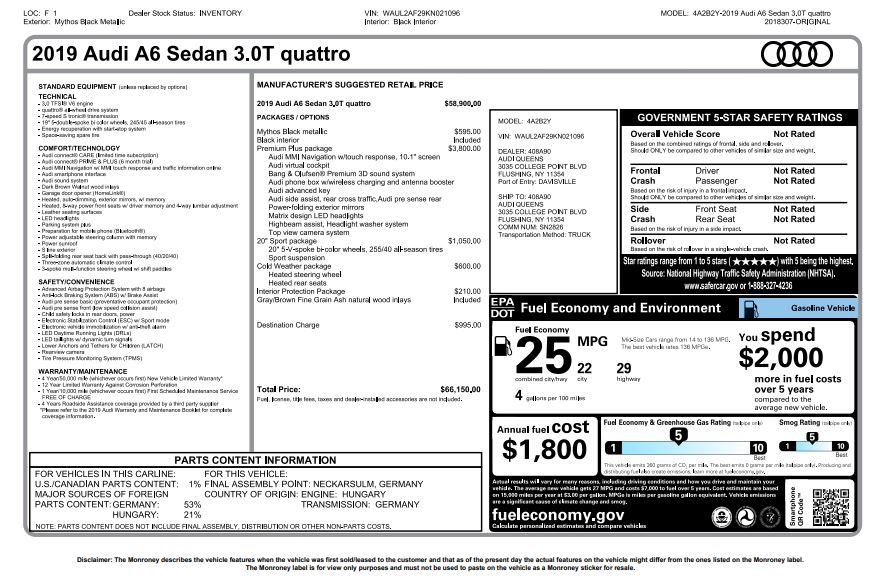 This A6 combines dynamic engineering with upscale refinement, from its advanced driver-assistance systems to its immersive sound experience. Every surface reflects Audi’s attention to detail, while the quattro drivetrain and sport suspension ensure precision handling and year-round versatility. Perfect for luxury sedan enthusiasts seeking performance, comfort, and timeless design in one premium package.