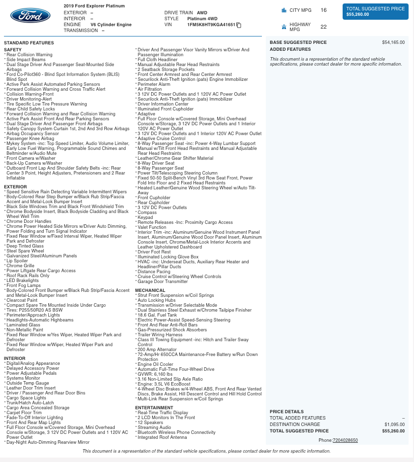 2019 Ford Explorer Platinum