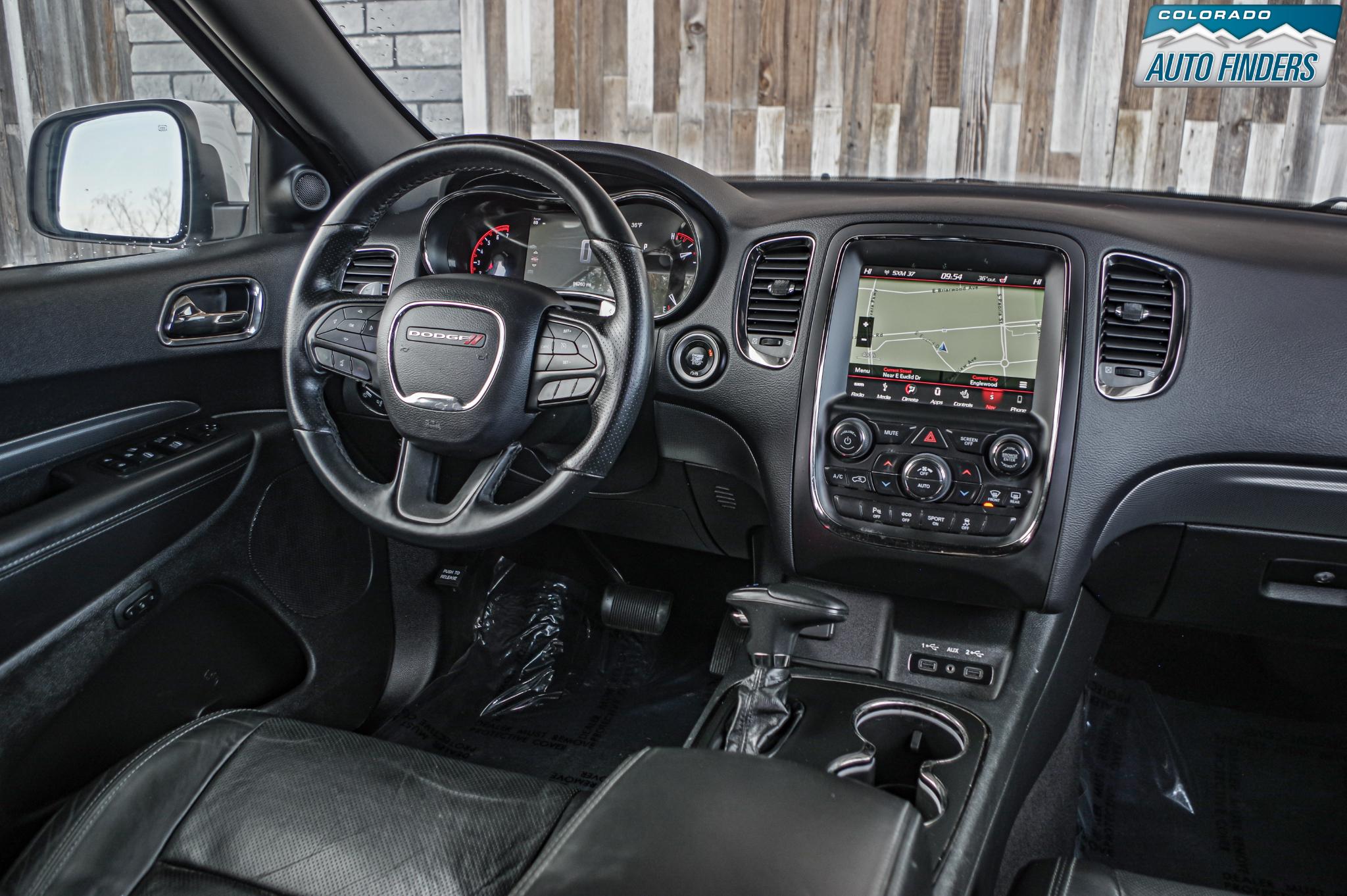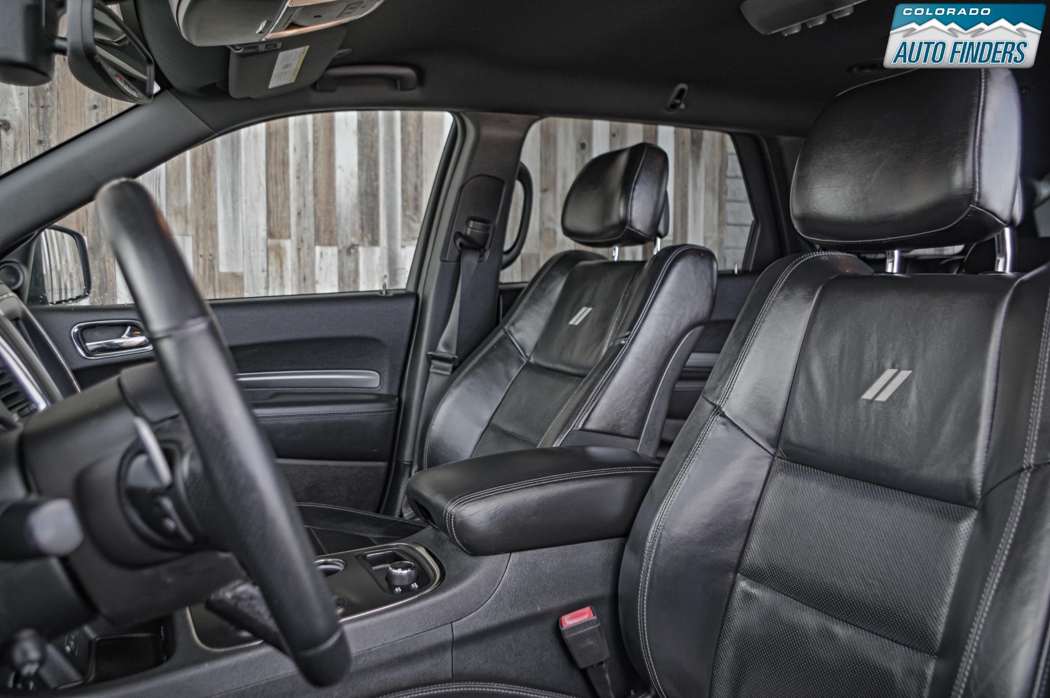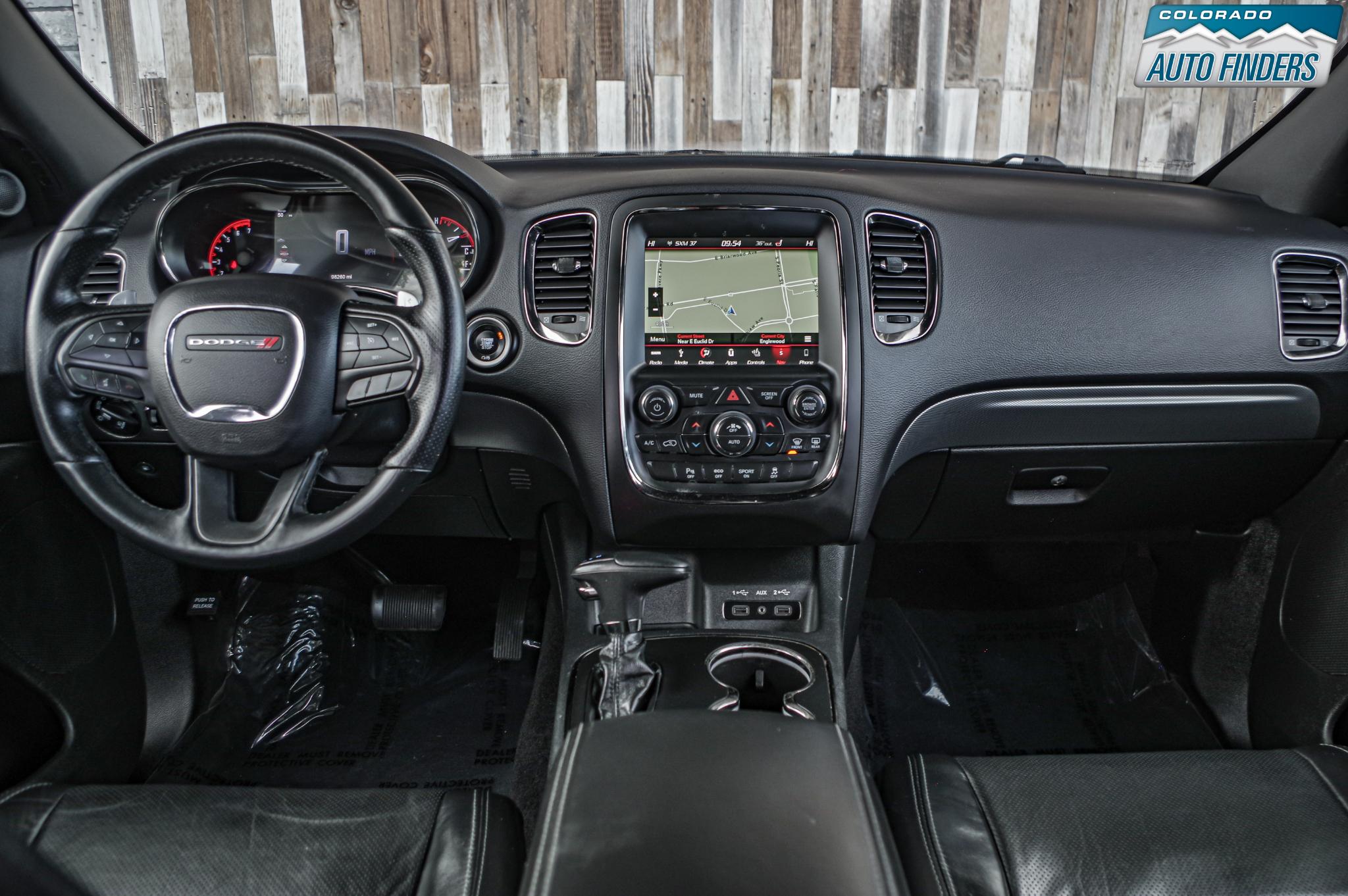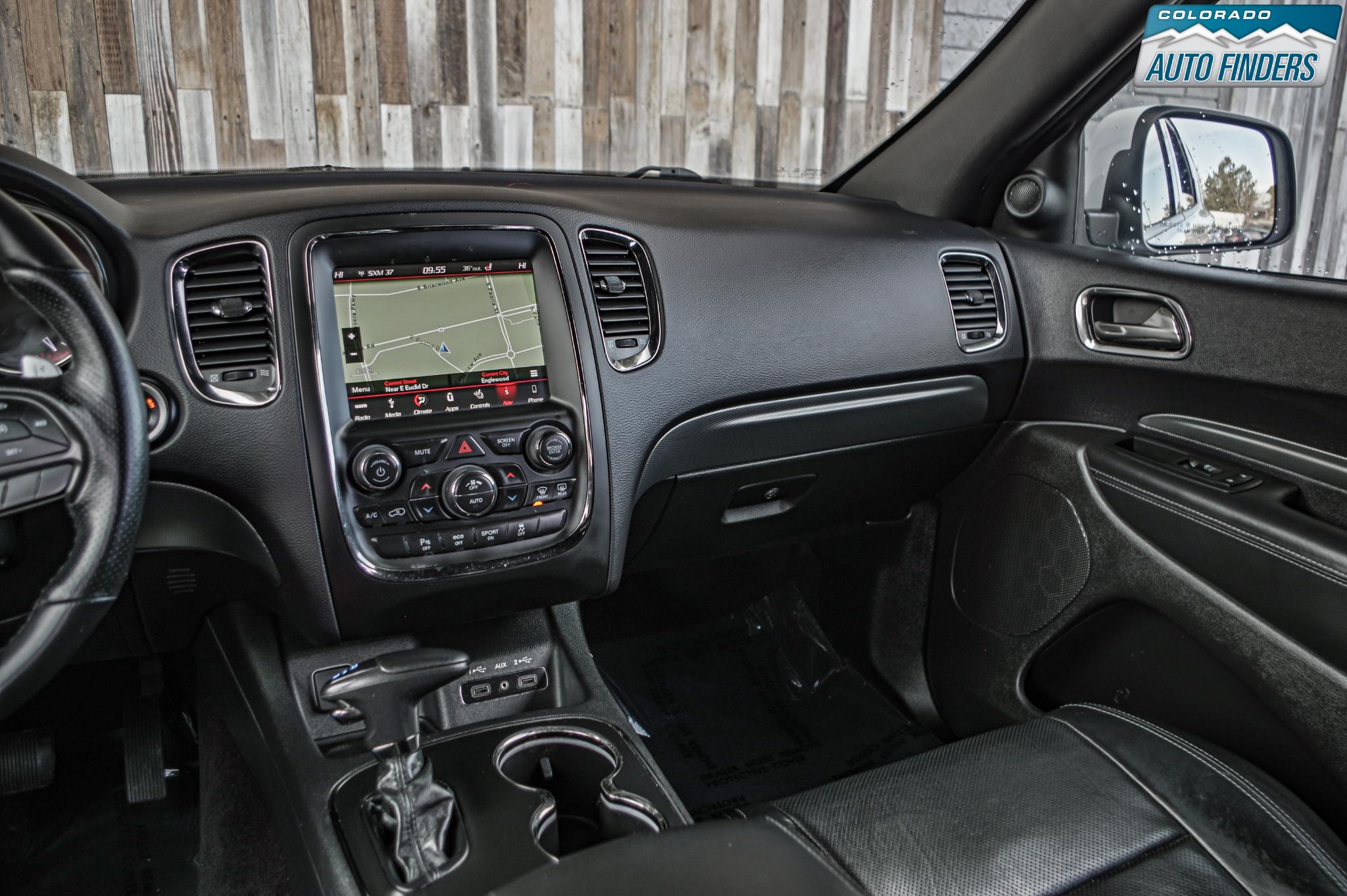 Inside, the Durango blends sport and comfort with leather and suede seating surfaces, heated seats, tri zone climate control, a premium touchscreen infotainment system with Bluetooth connectivity, navigation capability, and steering wheel mounted controls. The spacious three row cabin offers flexible seating and cargo configurations, making it ideal for families, road trips, or daily driving with extra gear.