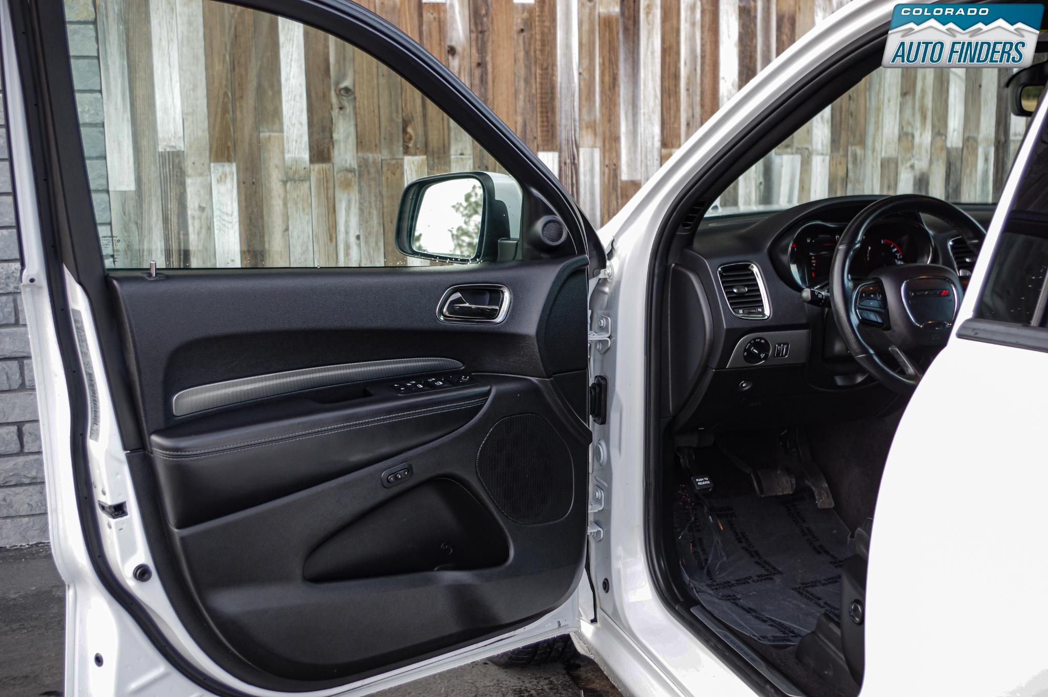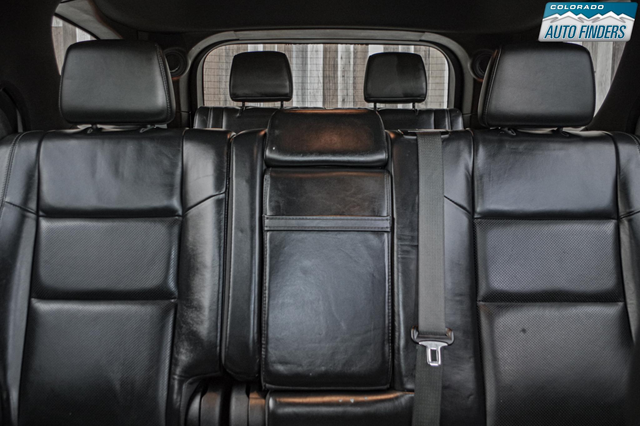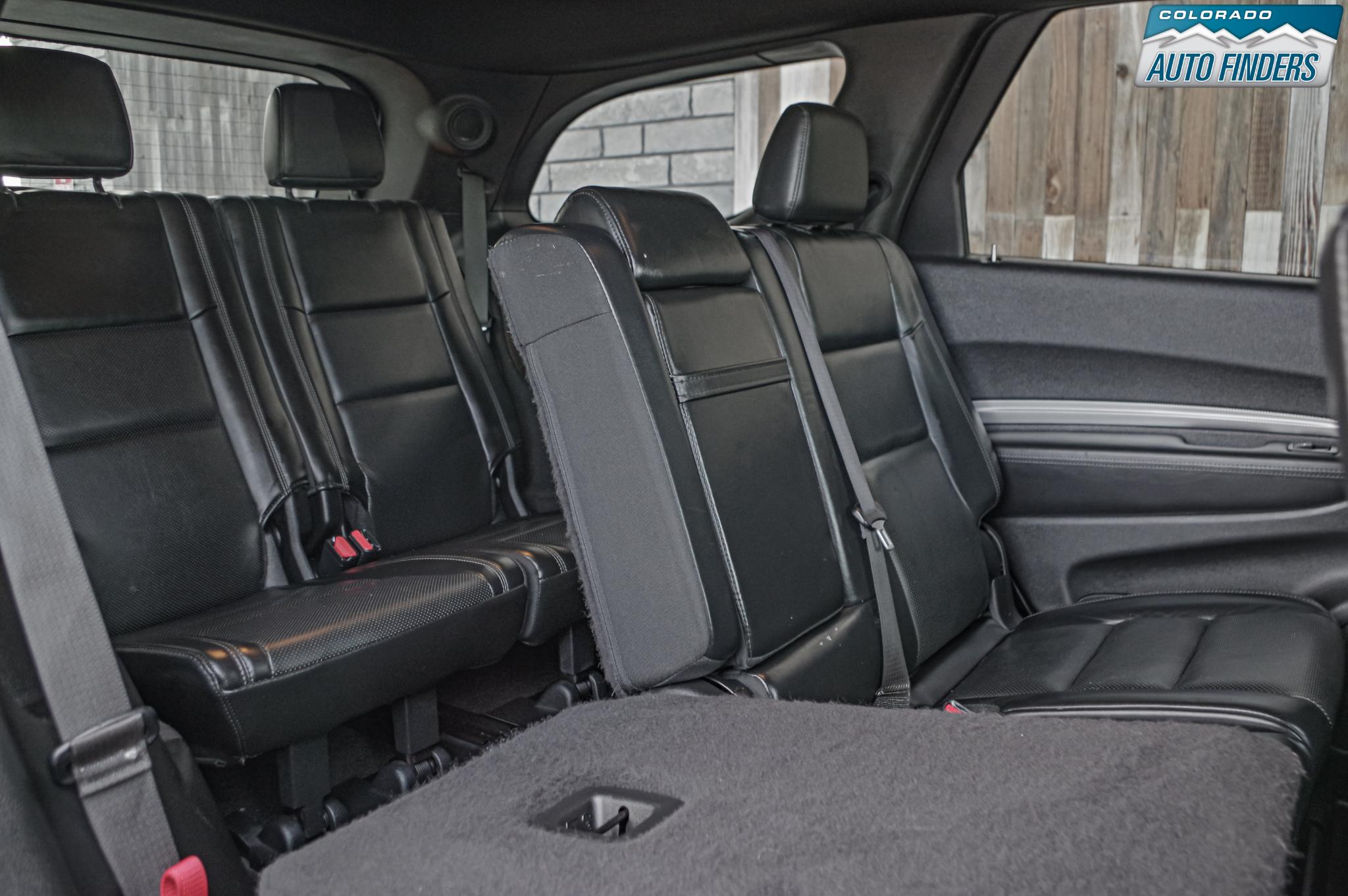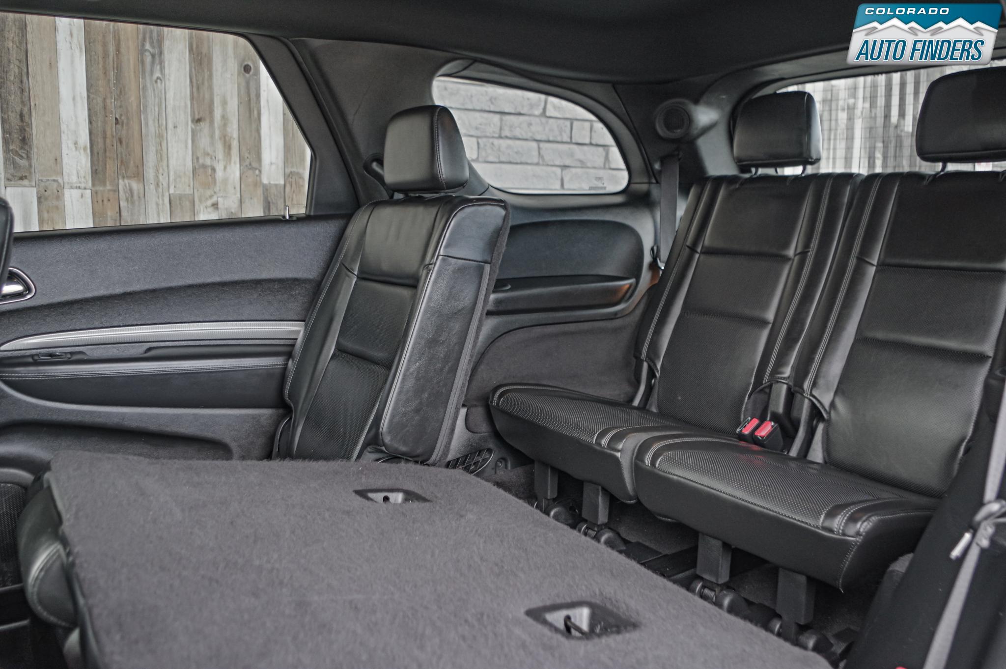 Inside, the Durango blends sport and comfort with leather and suede seating surfaces, heated seats, tri zone climate control, a premium touchscreen infotainment system with Bluetooth connectivity, navigation capability, and steering wheel mounted controls. The spacious three row cabin offers flexible seating and cargo configurations, making it ideal for families, road trips, or daily driving with extra gear.