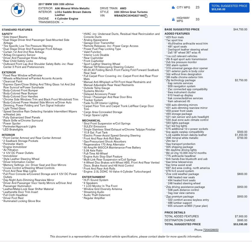 If you are looking for a luxury AWD sport sedan with added cargo versatility, premium comfort, and BMW performance engineering, this 2017 330i xDrive Gran Turismo offers a unique combination of practicality and driving enjoyment.