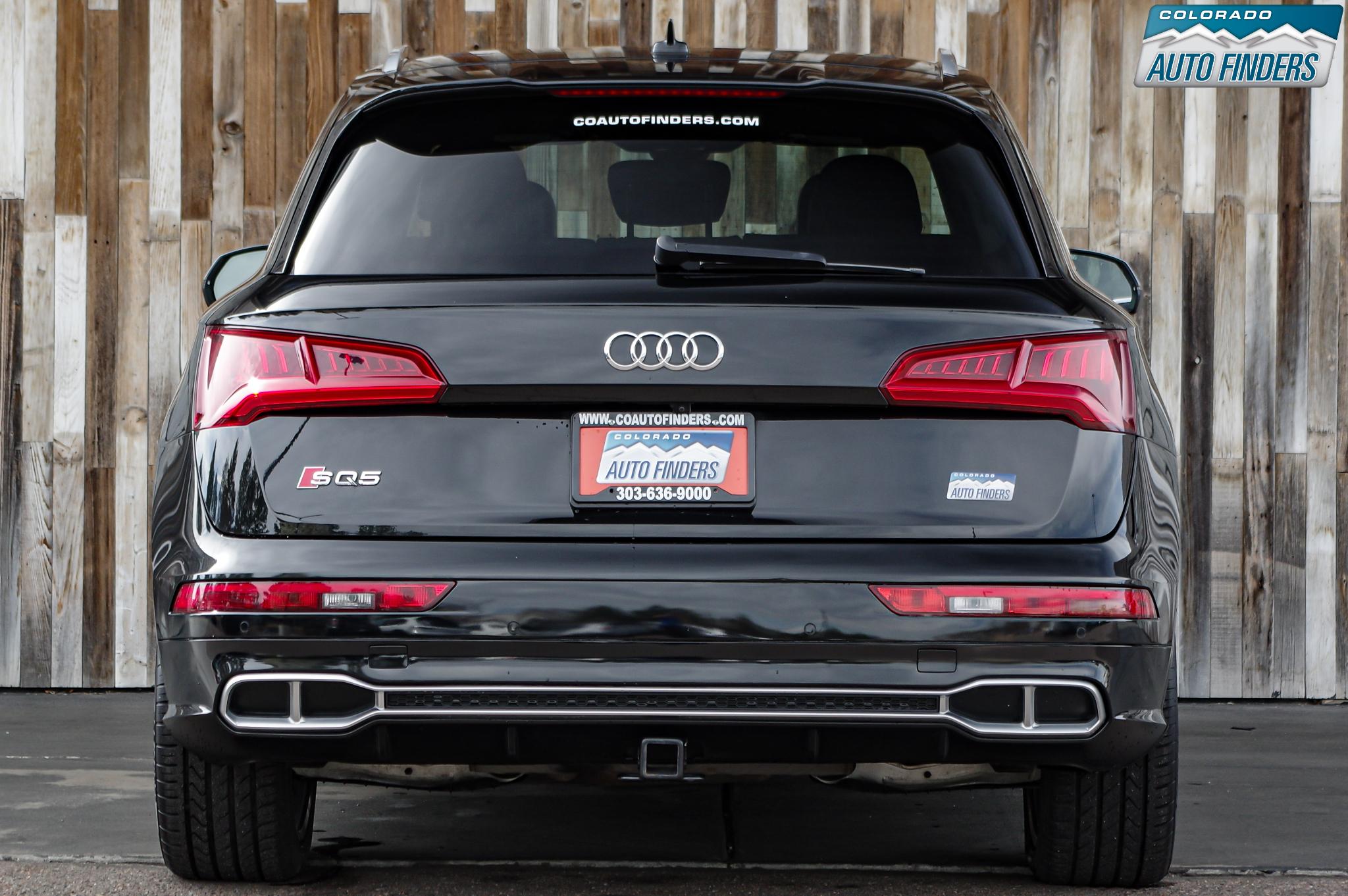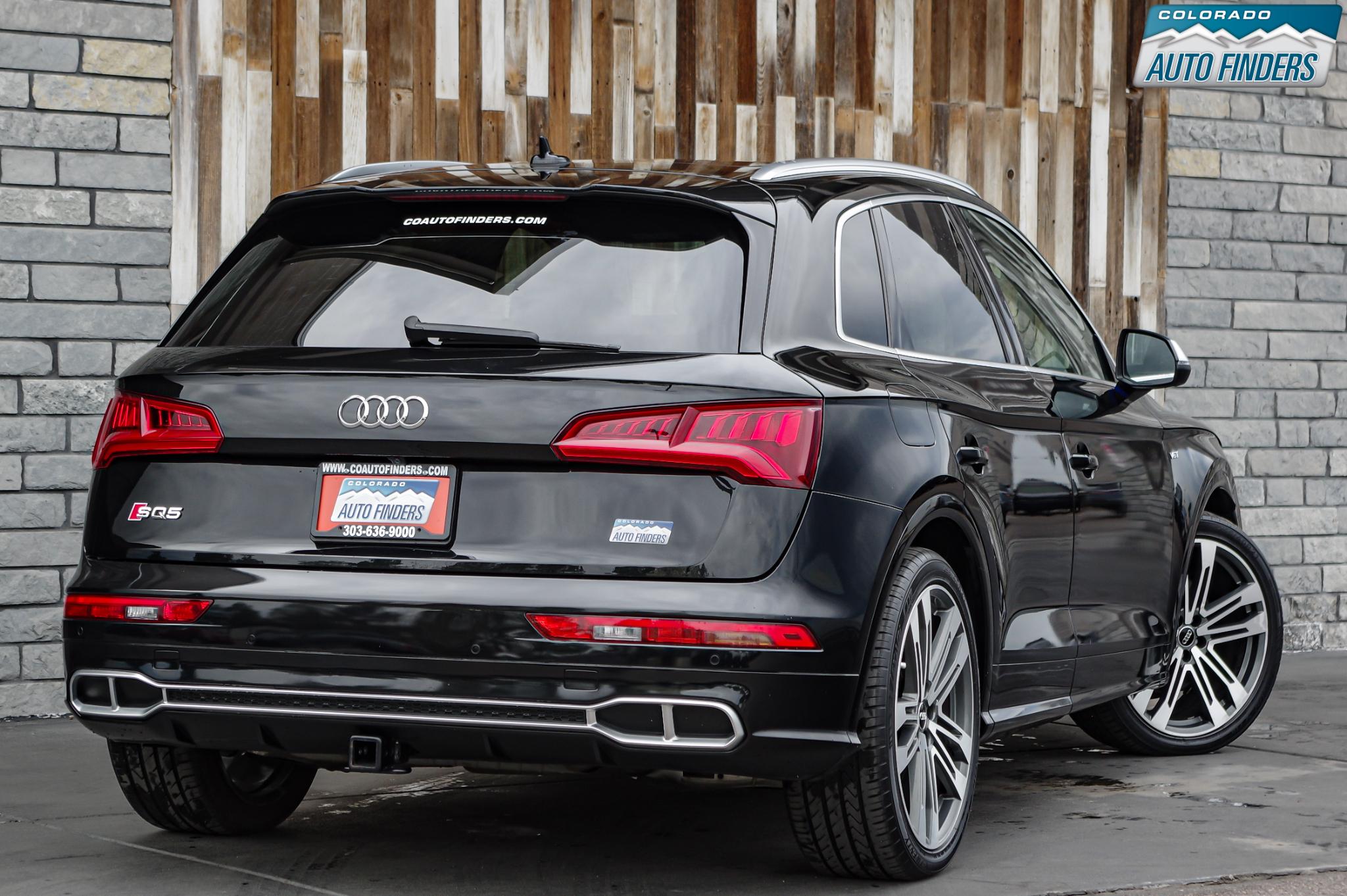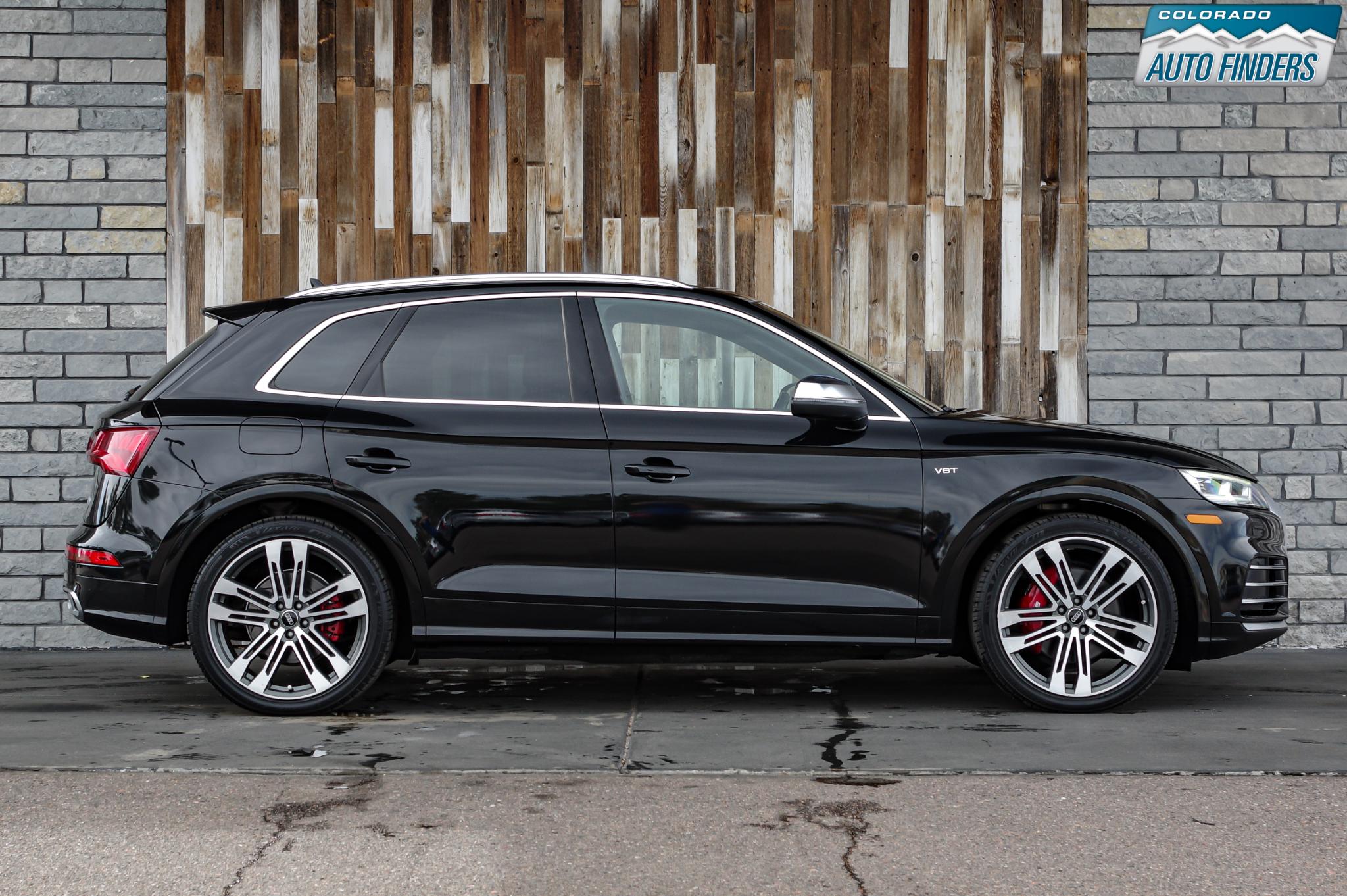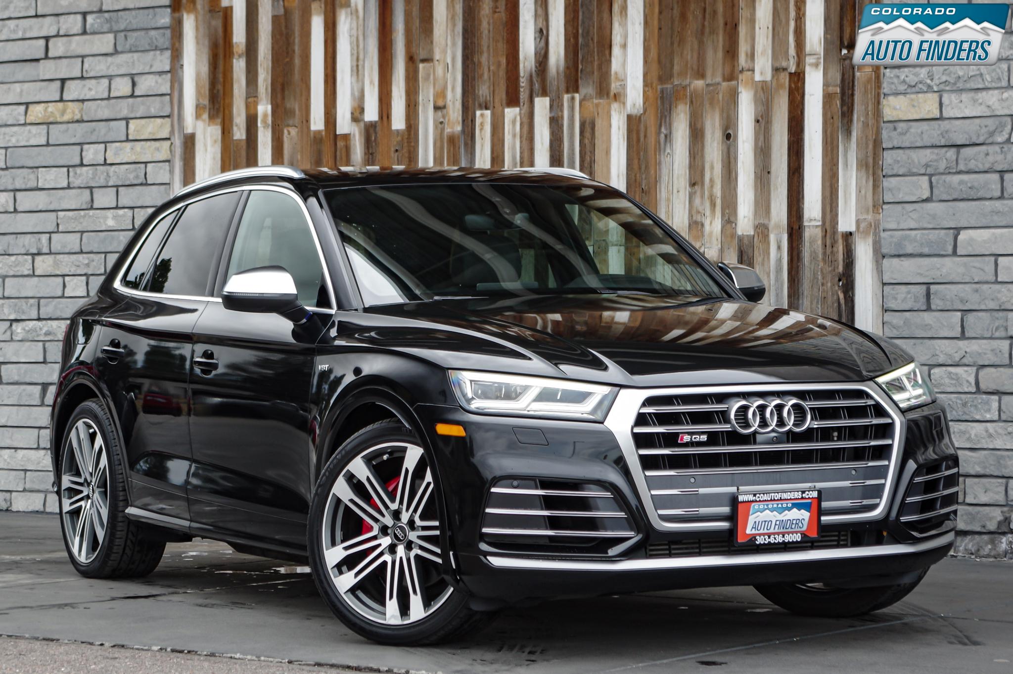 Performance meets everyday luxury in this 2018 Audi SQ5 3.0T quattro, finished in Mythos Black Metallic with a striking Rotor Gray interior featuring Anthracite stitching, delivering a bold and refined presence for Colorado driving.