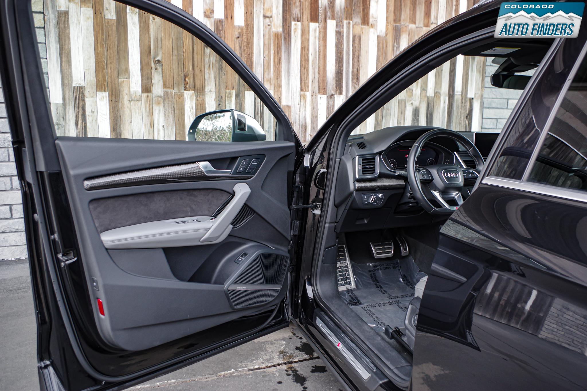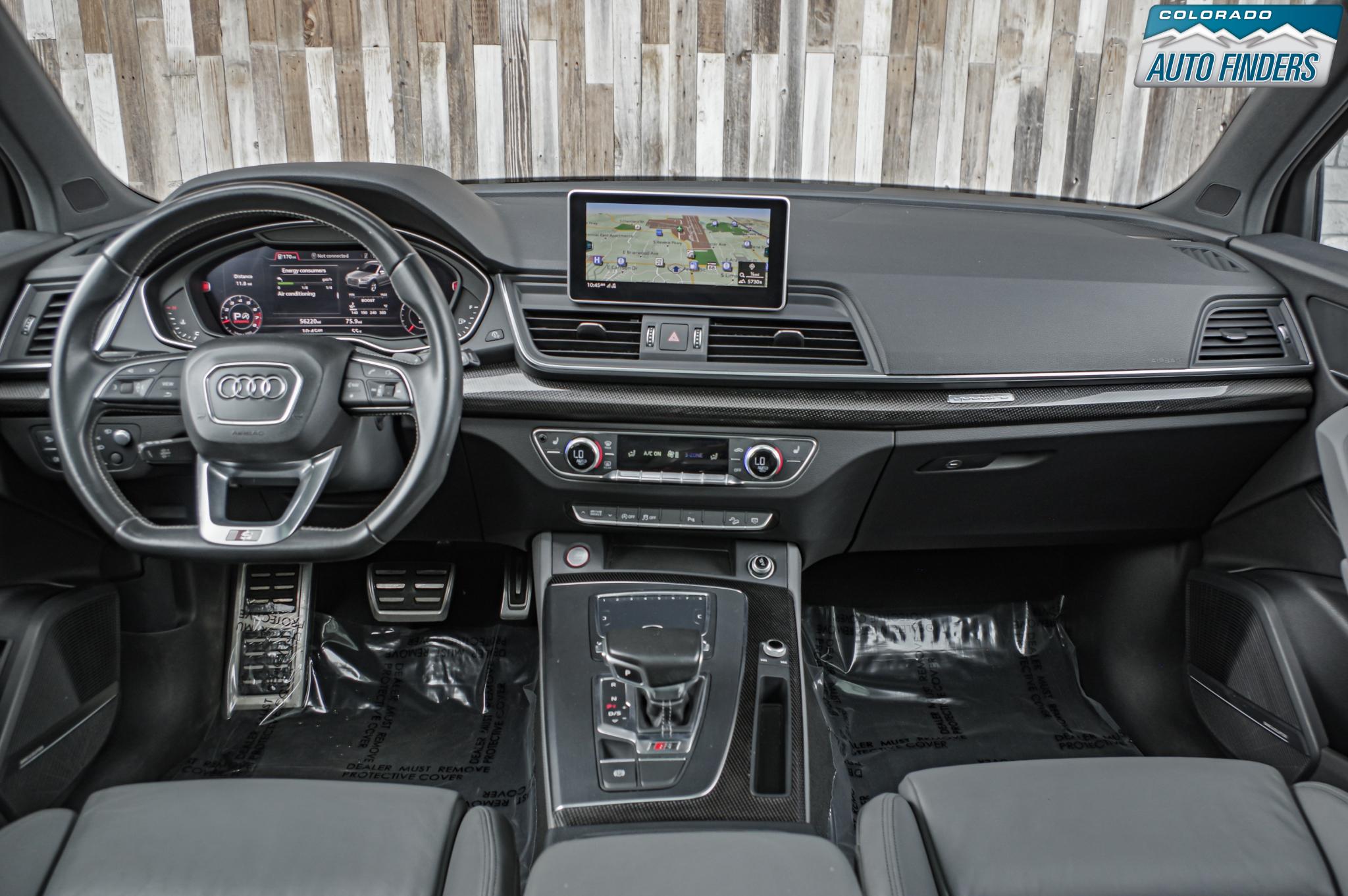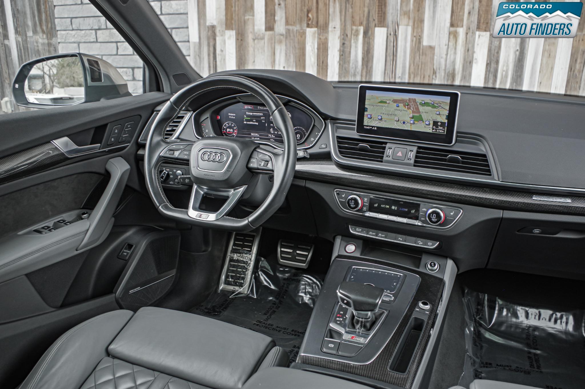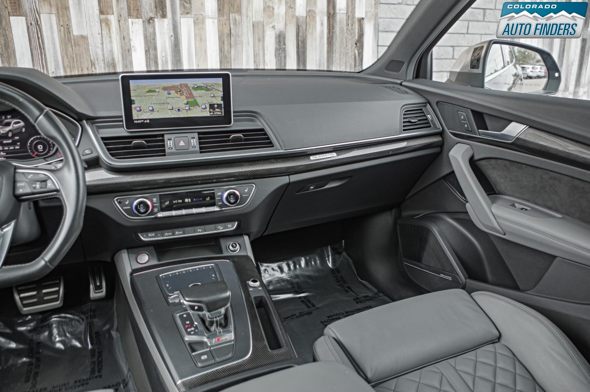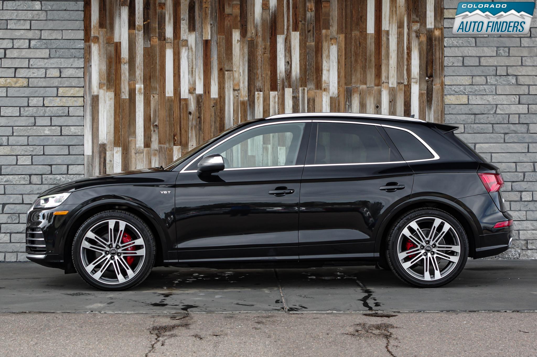 Performance meets everyday luxury in this 2018 Audi SQ5 3.0T quattro, finished in Mythos Black Metallic with a striking Rotor Gray interior featuring Anthracite stitching, delivering a bold and refined presence for Colorado driving.