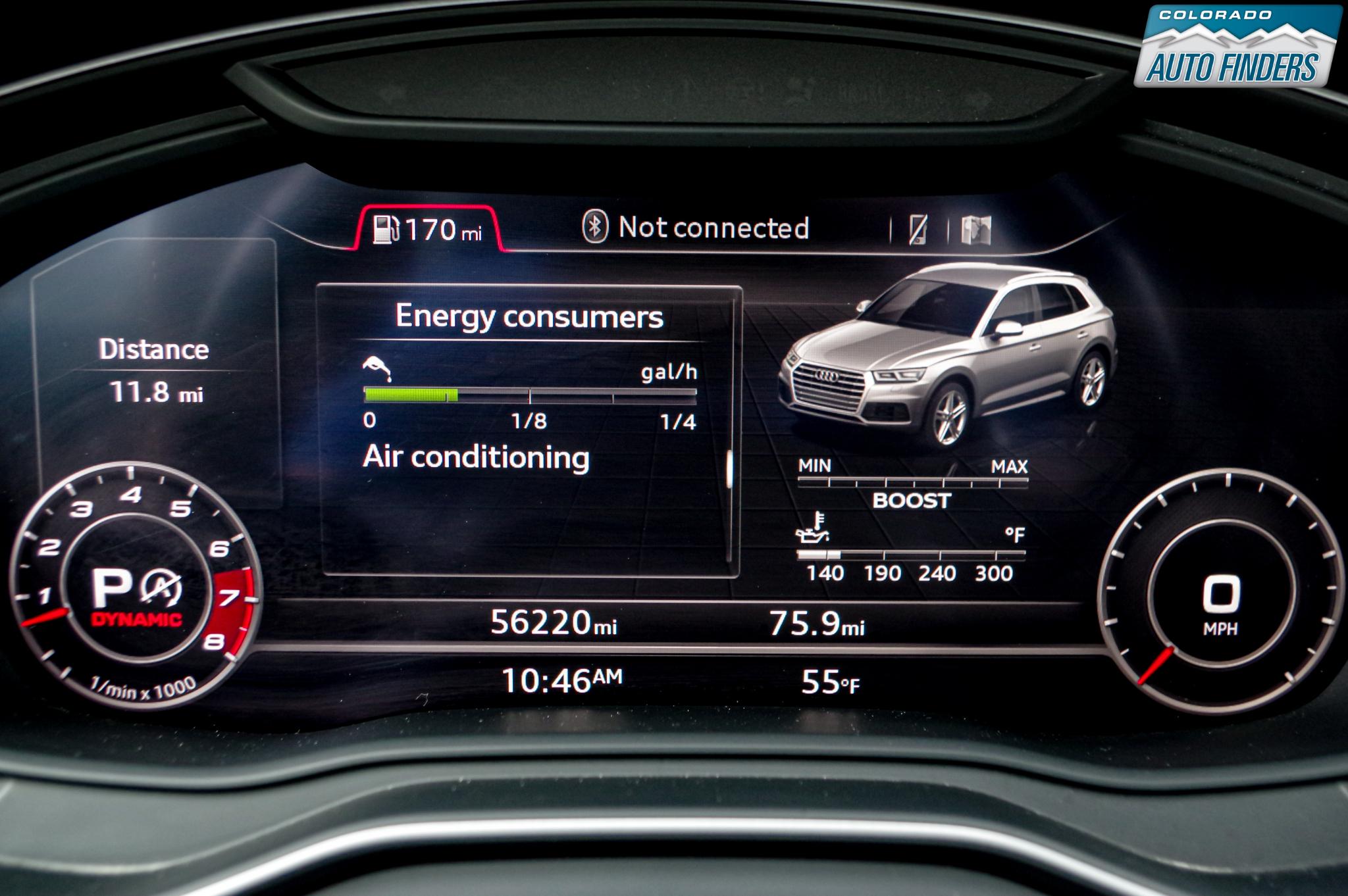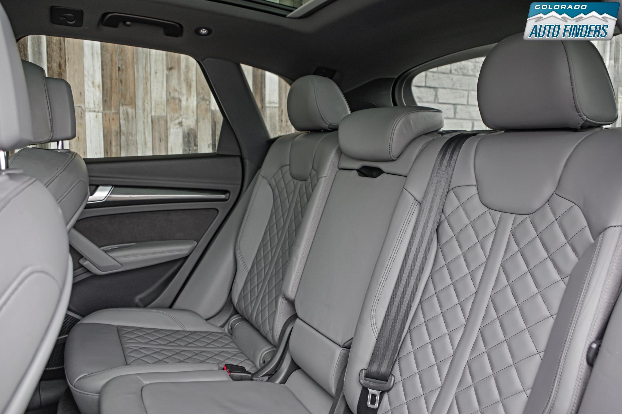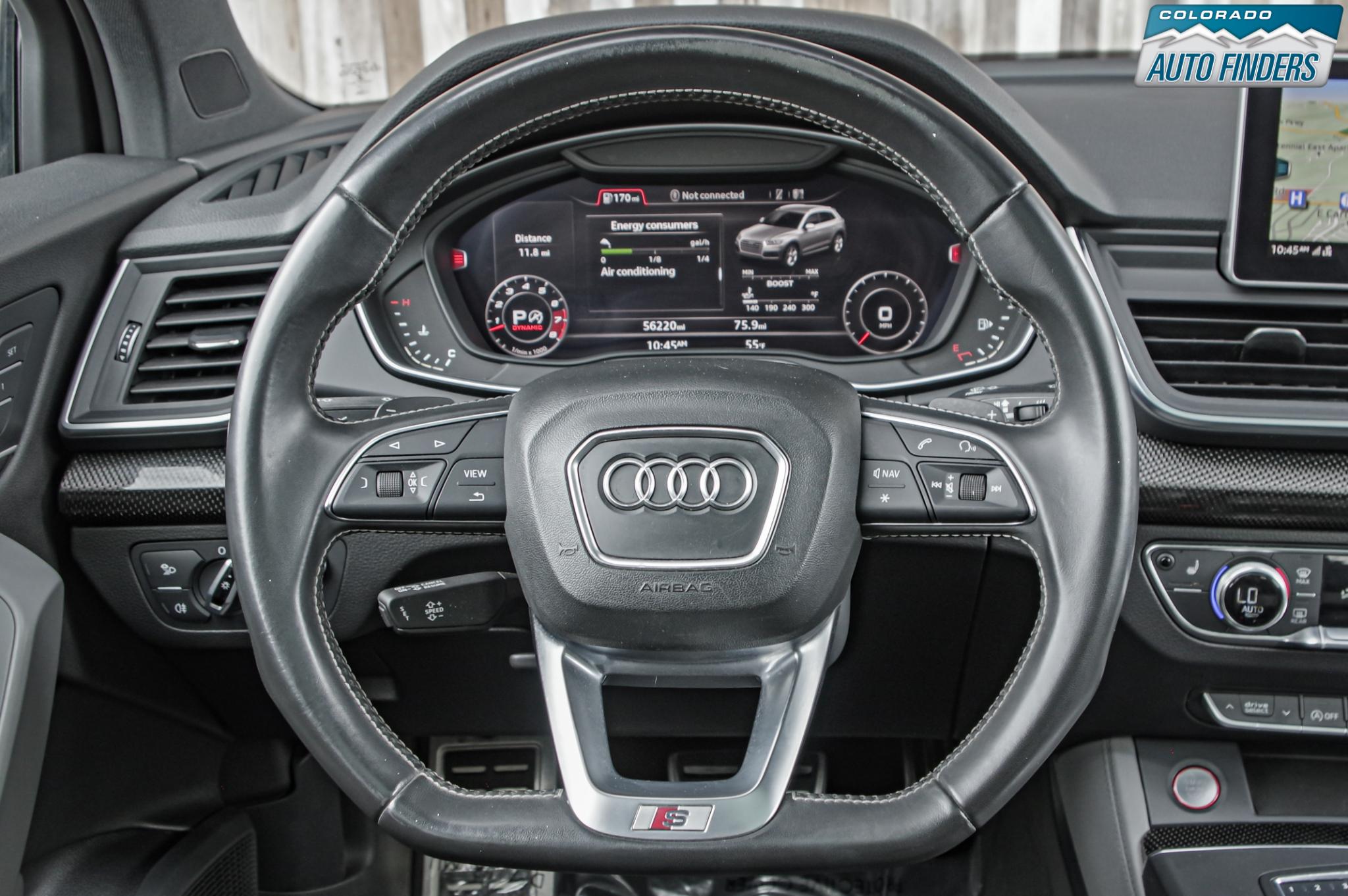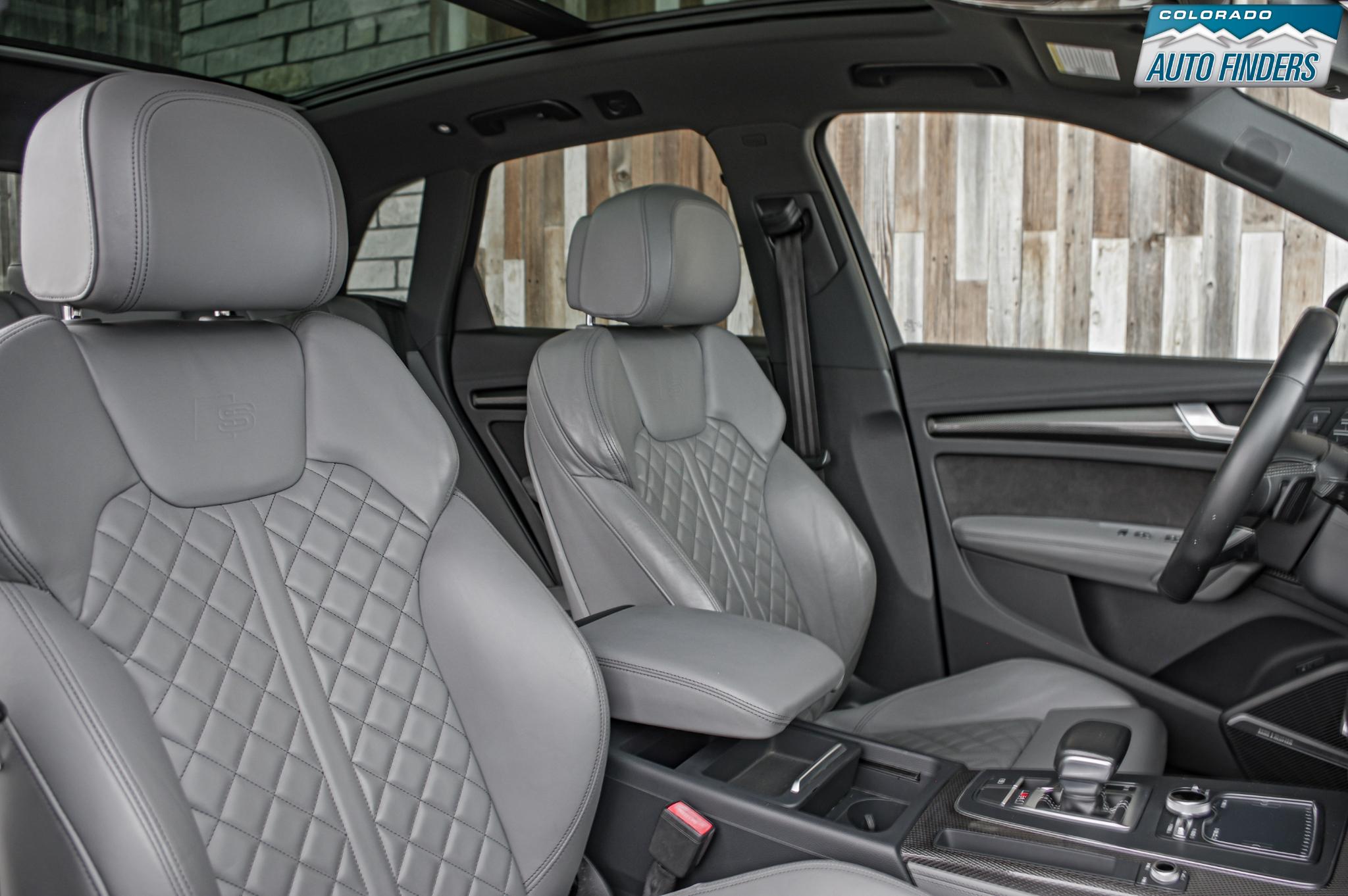 Performance meets everyday luxury in this 2018 Audi SQ5 3.0T quattro, finished in Mythos Black Metallic with a striking Rotor Gray interior featuring Anthracite stitching, delivering a bold and refined presence for Colorado driving.