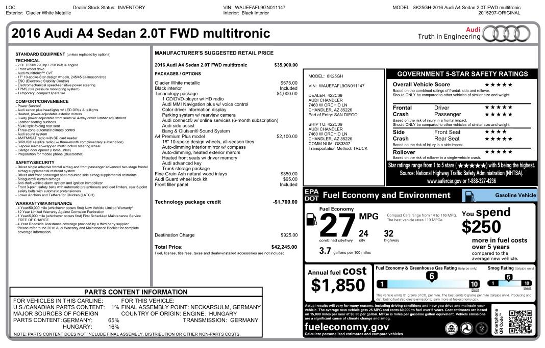 2016 Audi A4 Premium Plus